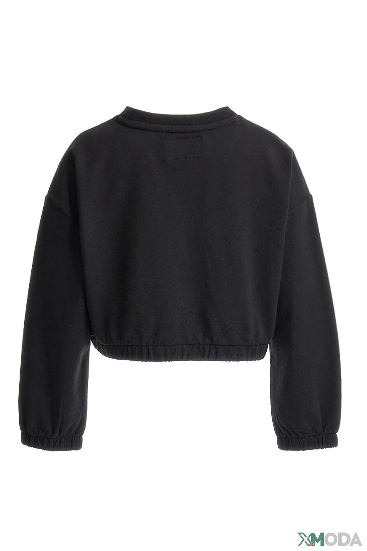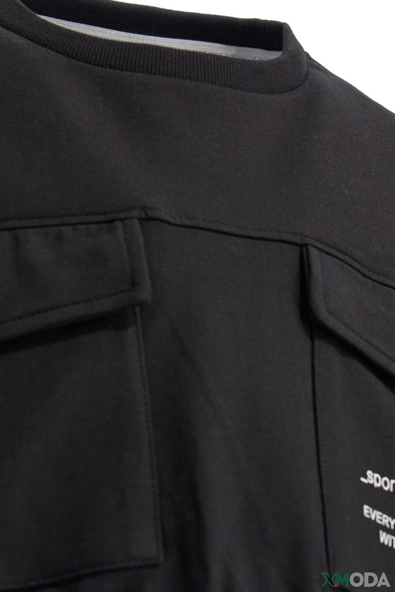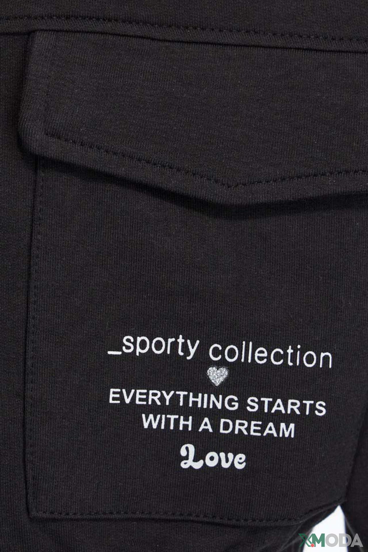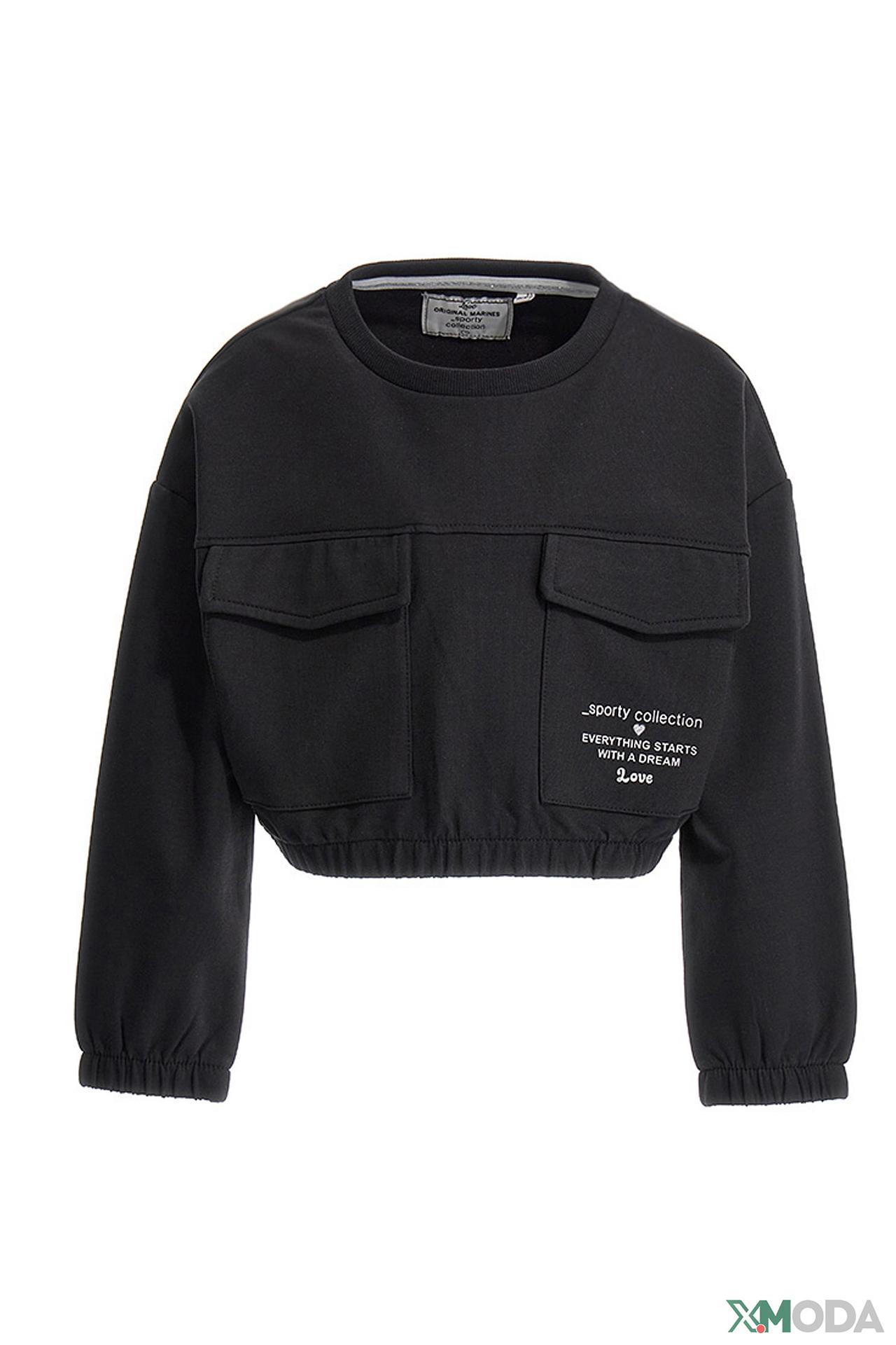 Универсальный черный цвет легко сочетается с различными элементами гардероба, а декоративные накладные карманы на груди добавляют изделию оригинальности. Надпись "_sporty collection EVERYTHING STARTS WITH A DREAM Love" с нежным принтом в виде сердечка придает джемперу особое очарование и вдохновляет на мечты.