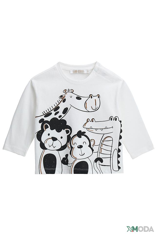 Лонгслив Original Marines молочного цвета с ярким принтом в виде забавных животных. Изготовлен из 100% хлопка, обеспечивающего комфорт и удобство в носке. Состав: хлопок 100%