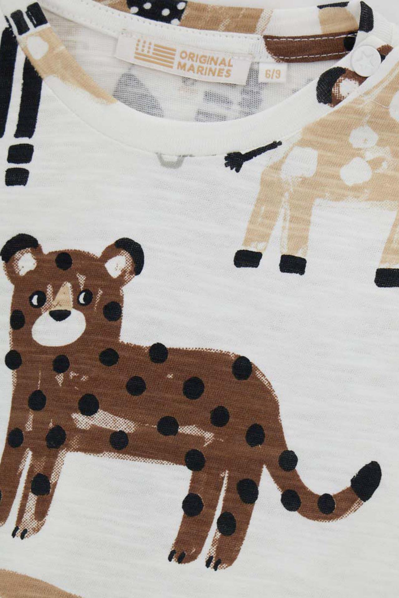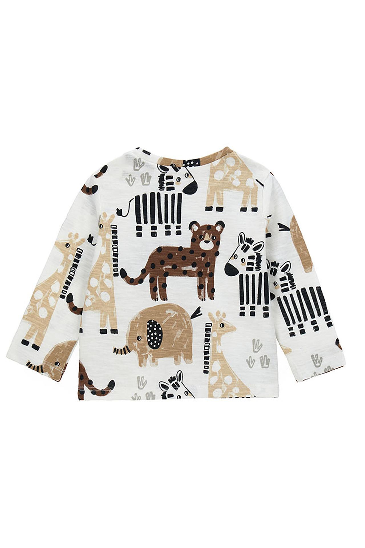 - Яркий сафари-принт. Футболка украшена забавными изображениями диких животных — леопарда, слона, жирафа и зебры, которые стимулируют воображение и придают изделию неповторимый детский шарм.