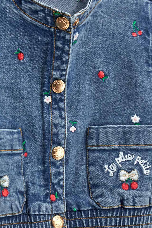 Джинсовый кардиган Original Marines синего цвета с цветочной вышивкой – стильная и удобная модель для девочки. Изготовлен из мягкого хлопка с добавлением эластана для комфорта и свободы движений. Состав: хлопок 98%, эластан 2%