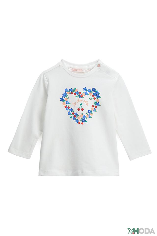 Детская футболка Original Marines молочного цвета с очаровательной вышивкой в виде сердца из цветов и вишен. Изготовлена из мягкого хлопка с добавлением эластана для комфорта и свободы движений. Состав: хлопок 92%, эластан 8%