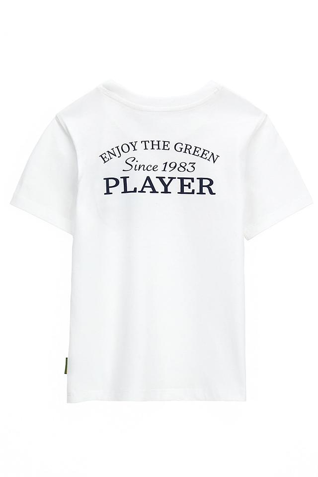 Дизайн: Футболка украшена стильным принтом на тему гольфа, который включает в себя надписи "COOL KIDS PLAY GOLF", "Since 1983" и изображение клюшек для гольфа. На спине также присутствует надпись "ENJOY THE GREEN PLAYER".