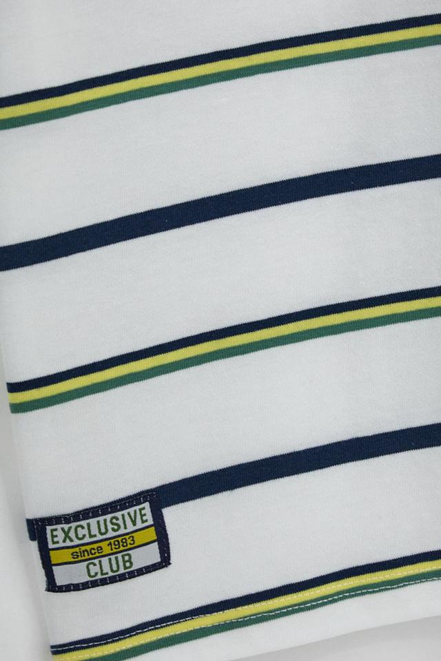 Классический крой и яркие горизонтальные полосы в синем, зелёном и белом цветах делают эту футболку стильной и универсальной. Небольшой логотип "Exclusive Club" на груди добавляет ей особого шарма.