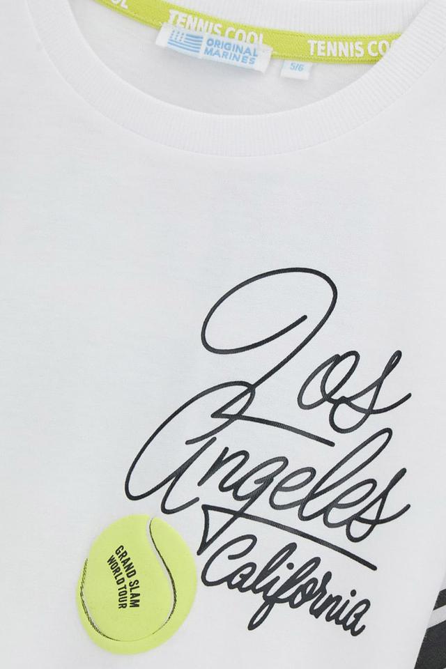 Эта стильная футболка от Original Marines станет отличным дополнением к гардеробу вашего мальчика. Футболка выполнена в белом цвете и украшена оригинальным принтом с изображением теннисного мяча и надписью "Los Angeles California".