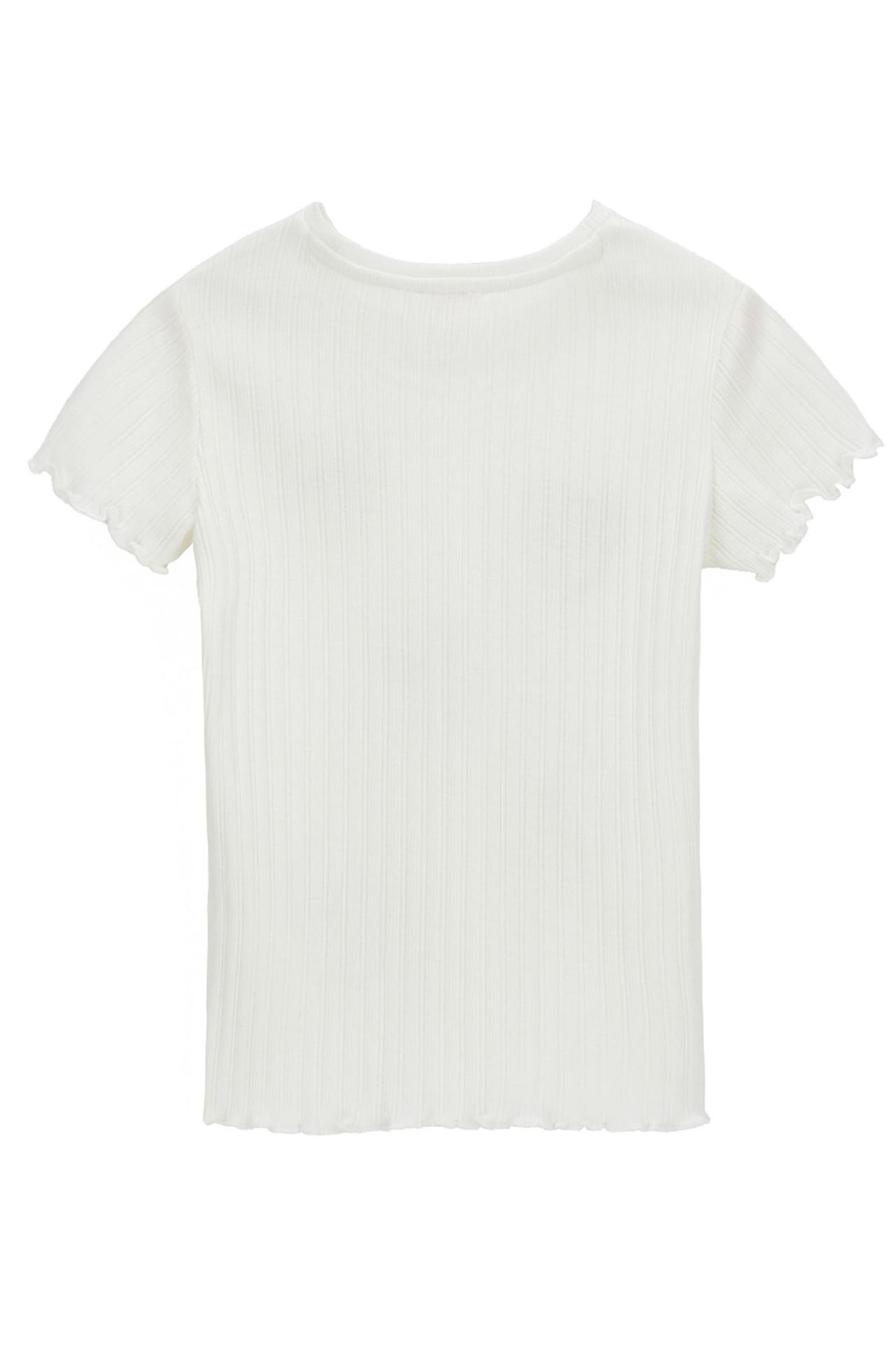 Игривый дизайн и качественные материалы делают эту футболку незаменимой для юных модниц. Волнообразная обработка края рукавов и низа добавляет уникальности, делая модель особенно привлекательной.