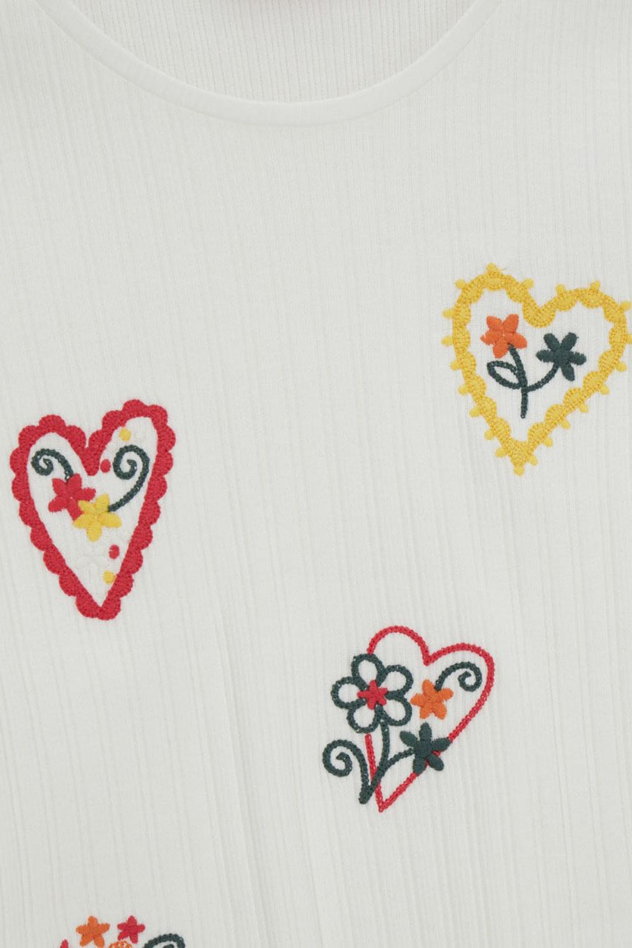 - Очаровательный дизайн: Декоративная вышивка ярких сердечек с цветами делает каждую футболку уникальной и подчеркивает индивидуальность, добавляя детской одежде особый шарм.