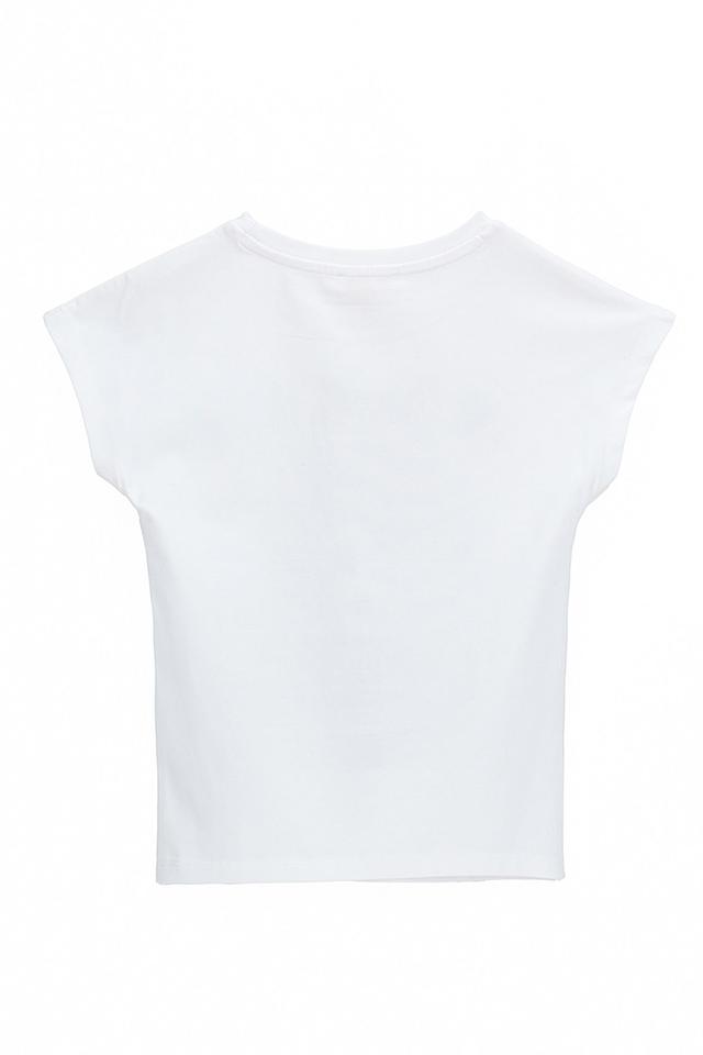Белая футболка Original Marines для девочки с ярким принтом в стиле "St. Tropez". Изготовлена из мягкого хлопка с добавлением эластана для комфорта и свободы движений. Состав: хлопок 92%, эластан 8%