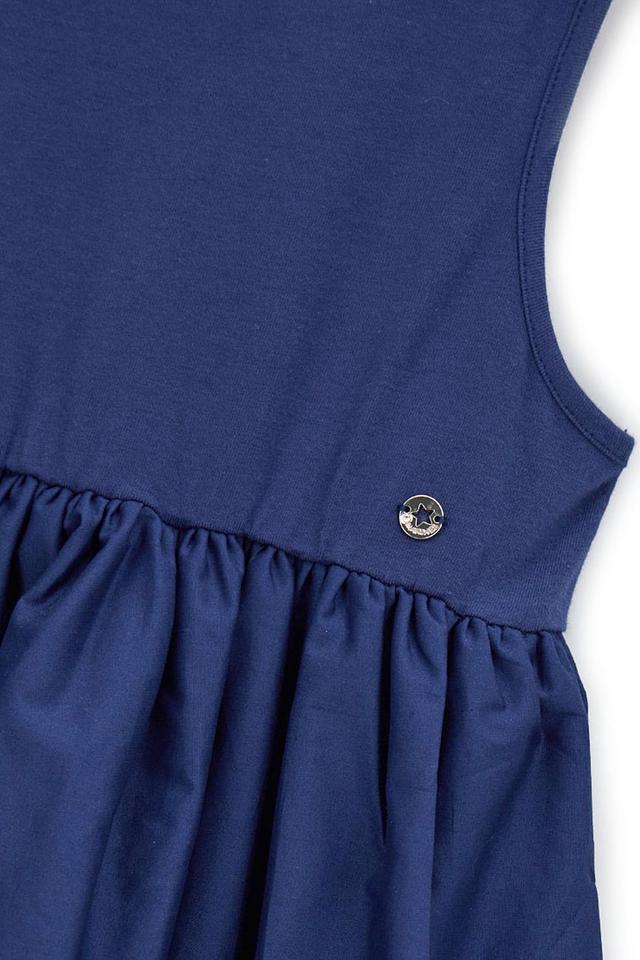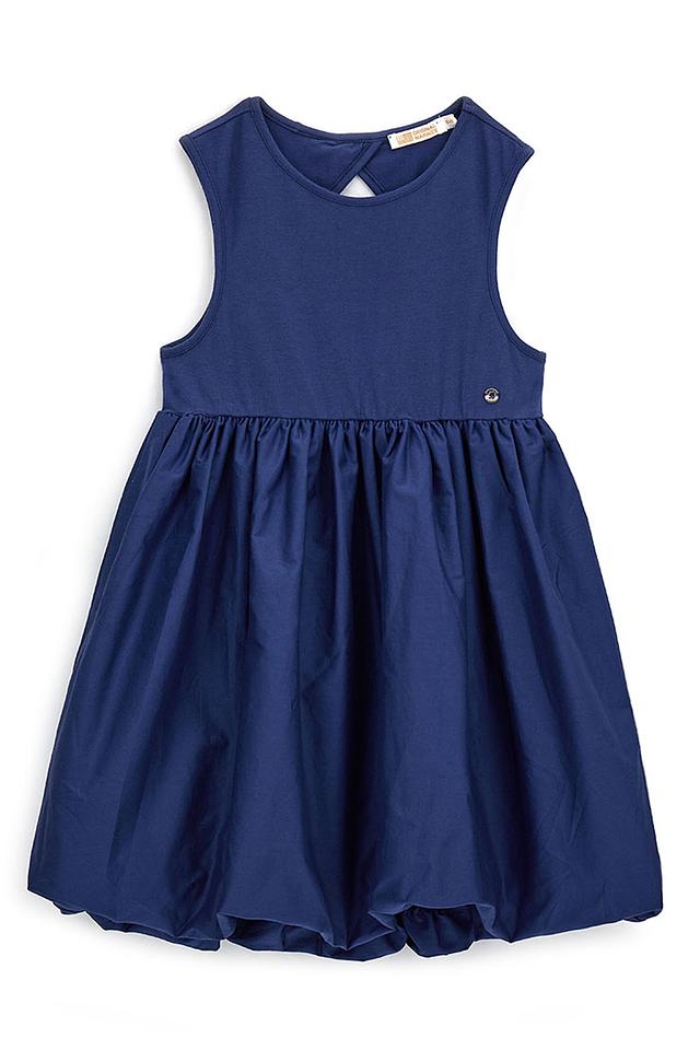 Синее платье от Original Marines для девочек, выполненное из хлопка с добавлением эластана. Модель имеет круглый вырез горловины и декоративную выемку на спине. Подкладка выполнена из 100% хлопка. Состав: Состав_подкладка хлопок 100%, Состав_2 хлопок 100%, хлопок 95%, эластан 5%
