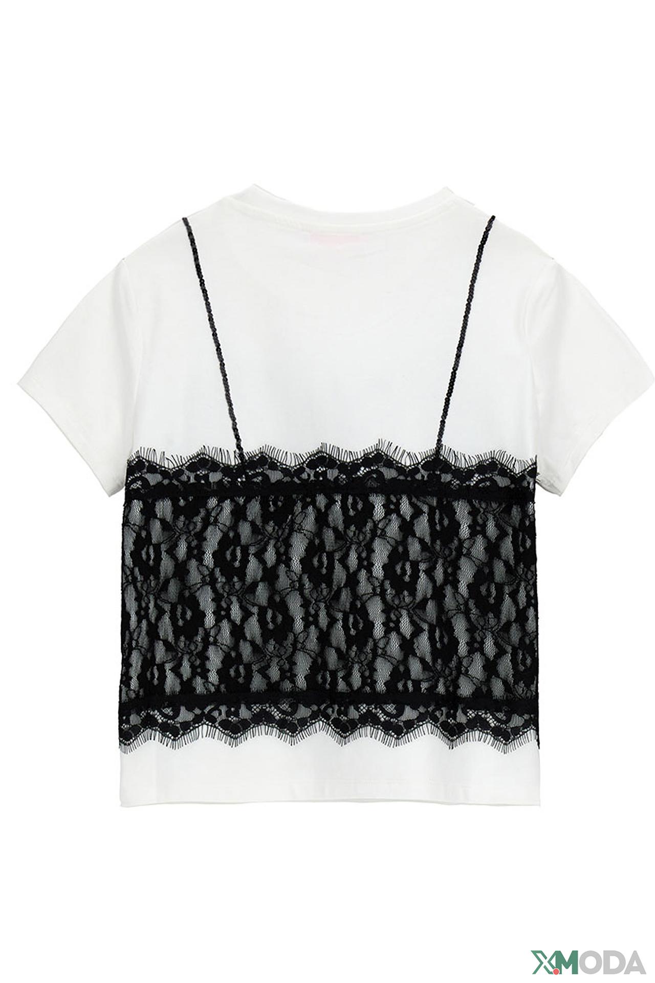 - Превосходный состав: Основа футболки из 92% хлопка и 8% эластана гарантирует комфорт, долговечность и отличную посадку, а кружевные элементы из 95% полиамида и 5% эластана добавляют изящества и эластичности.