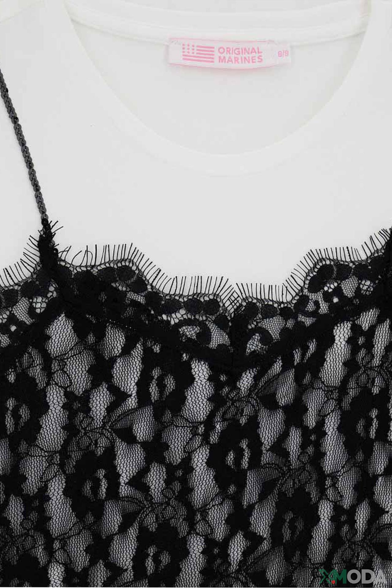 Детская футболка Original Marines – это сочетание классического комфорта и изысканного стиля для юных модниц. Изготовленная из высококачественного хлопка с добавлением эластана, эта футболка обеспечивает мягкость и воздухопроницаемость, что крайне важно для нежной детской кожи. Элегантное чёрное кружево на белом фоне придает изделию нарядный и уникальный вид, превращая обычную футболку в основу для праздничного или стильного повседневного образа.