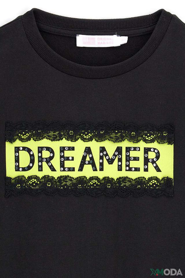Свитшот Original Marines для девочки, чёрного цвета, с оригинальным принтом "DREAMER". Изготовлен из мягкого хлопка с добавлением эластана для комфорта и свободы движений. Состав: хлопок 95%, эластан 5%