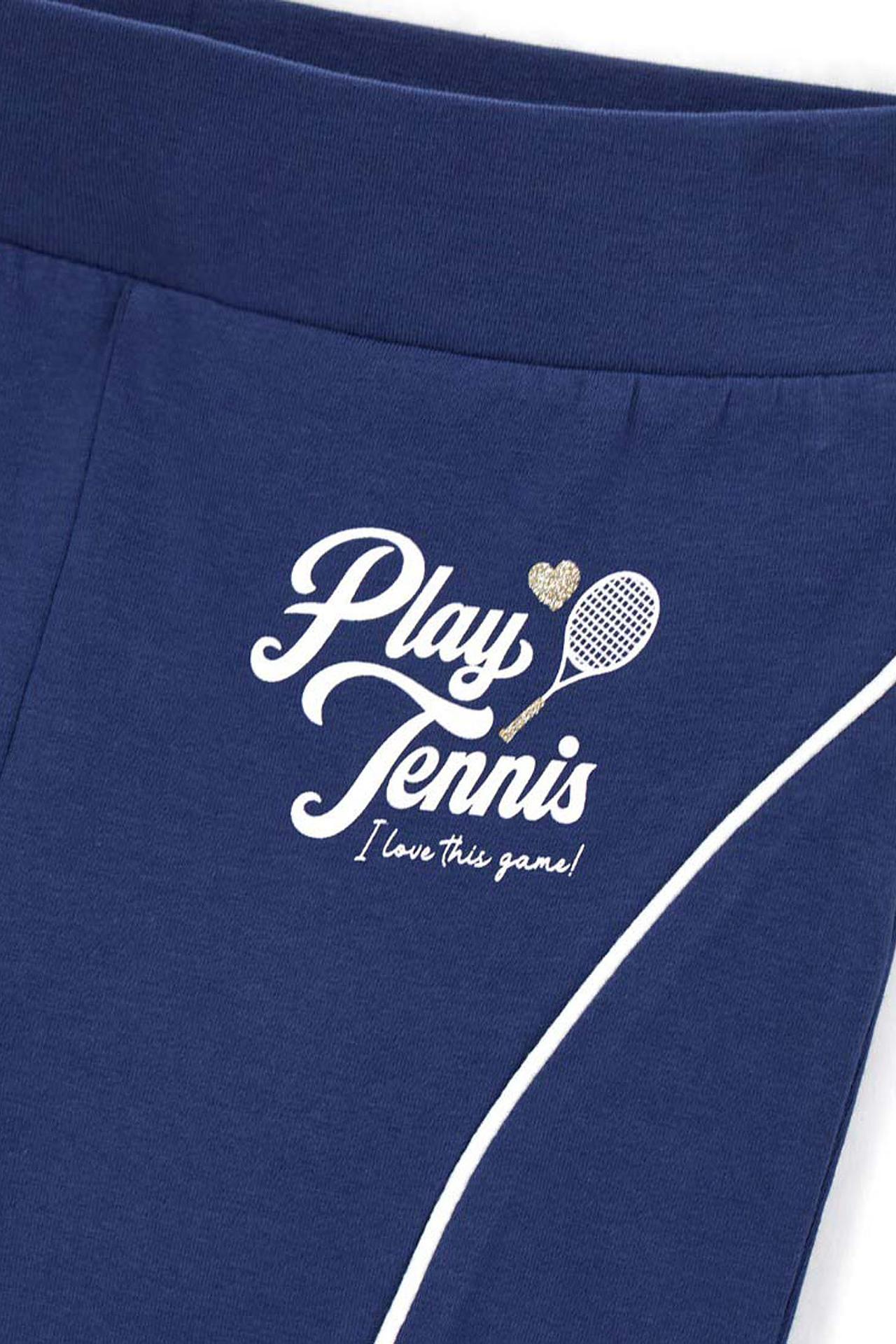 - Стильный дизайн. Яркий синий цвет, контрастные белые линии и принт на тему тенниса создают модный спортивный образ, который понравится каждой девочке.