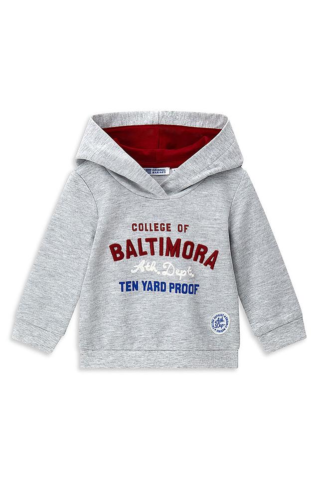Стильный джемпер от Original Marines станет отличным дополнением к детскому гардеробу. Модель выполнена из мягкого и приятного на ощупь материала, обеспечивающего комфорт в течение всего дня. Оригинальный дизайн с принтом "COLLEGE OF BALTIMORA" и надписью "TEN YARD PROOF" придаст образу юного модника индивидуальности. Этот джемпер идеально подходит для повседневной носки, прогулок и активных игр.