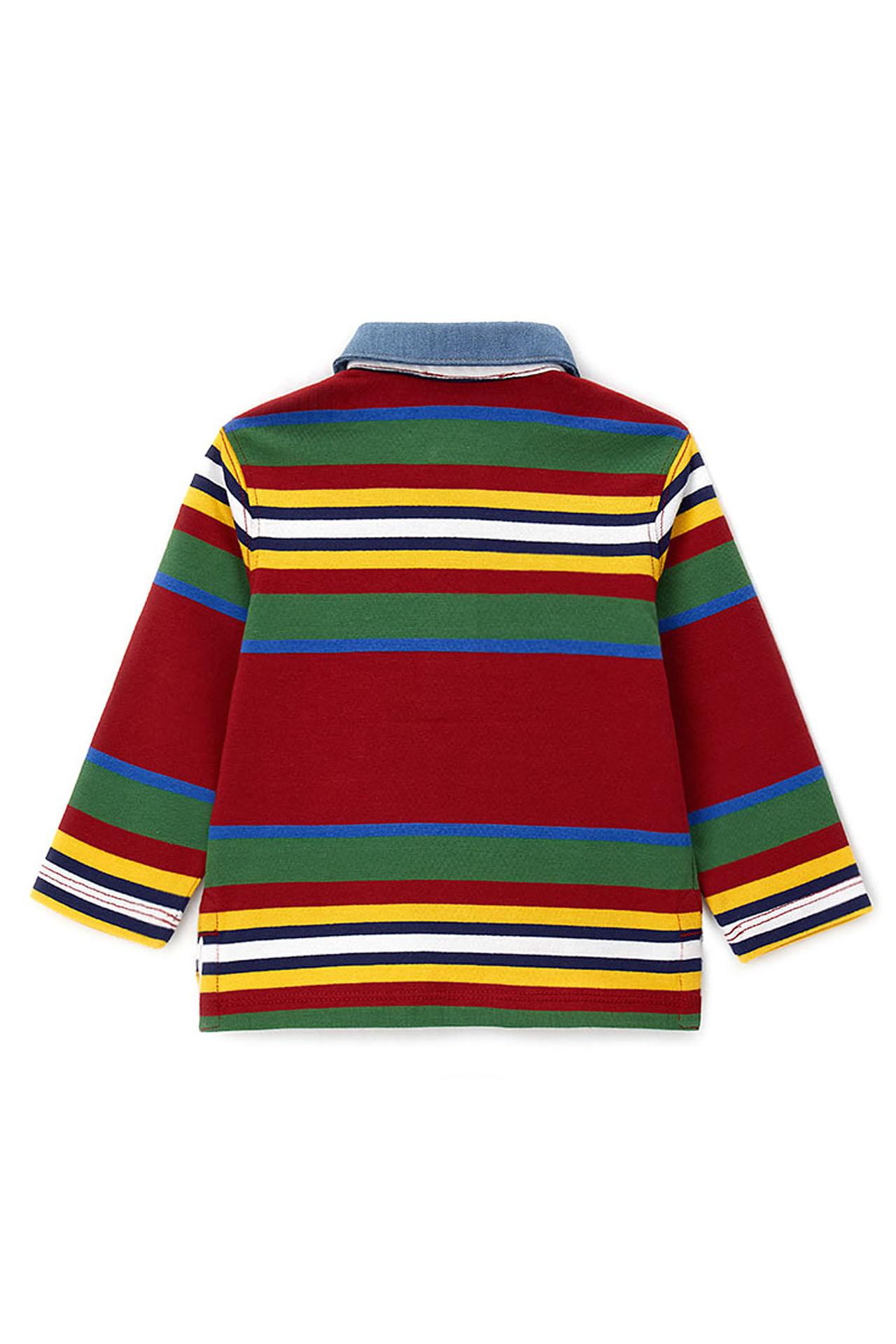 - Дизайн: Классический воротник-поло с планкой на пуговицах и длинные рукава придают изделию элегантность. Яркая горизонтальная полоска делает образ ребенка более выразительным и запоминающимся.