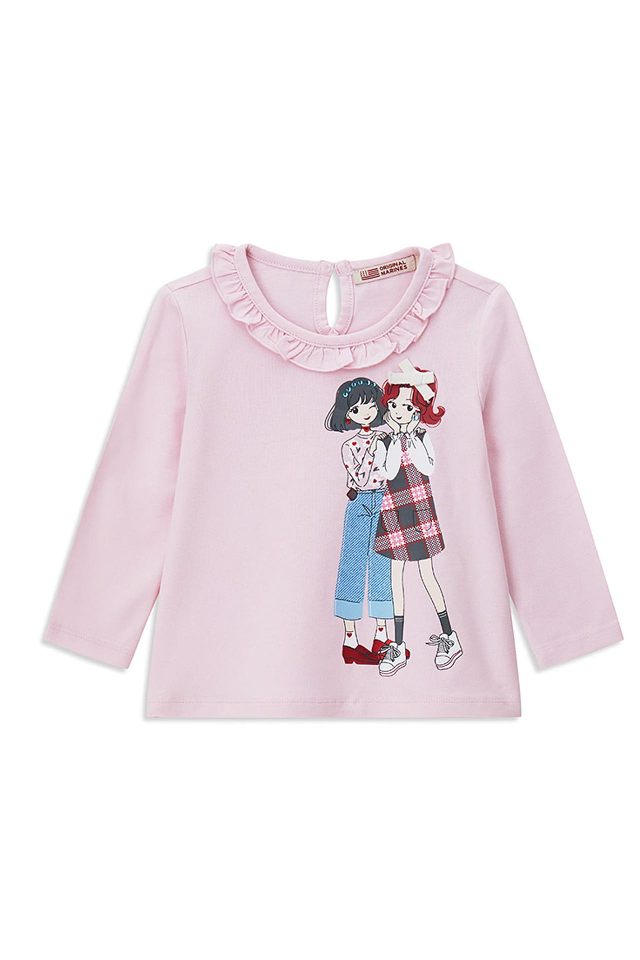Стильная розовая футболка с длинными рукавами от Original Marines, разработанная специально для маленьких модниц. Нежный оттенок и очаровательный принт с двумя подружками делают эту футболку идеальным дополнением к детскому гардеробу. Мягкая ткань обеспечивает комфорт в течение всего дня.