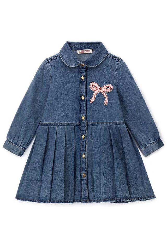 Джинсовое платье Original Marines синего цвета, украшенное аппликацией в виде банта. Удобный крой и 100% хлопковый состав делают это платье идеальным выбором для повседневной носки. Состав: хлопок 100%