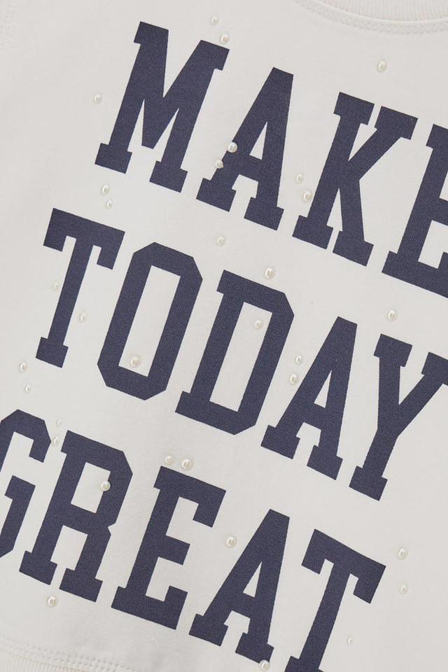 Этот стильный джемпер от Original Marines станет отличным дополнением к гардеробу юной модницы. Выполнен в белом цвете и украшен крупной надписью "MAKE TODAY GREAT" тёмно-синим цветом.