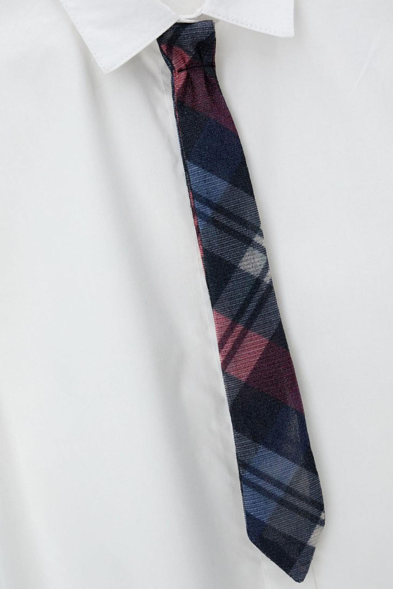 - Дизайн: Классический белый цвет блузы дополнен стильным съемным галстуком в клетку, придающим образу завершенность.
