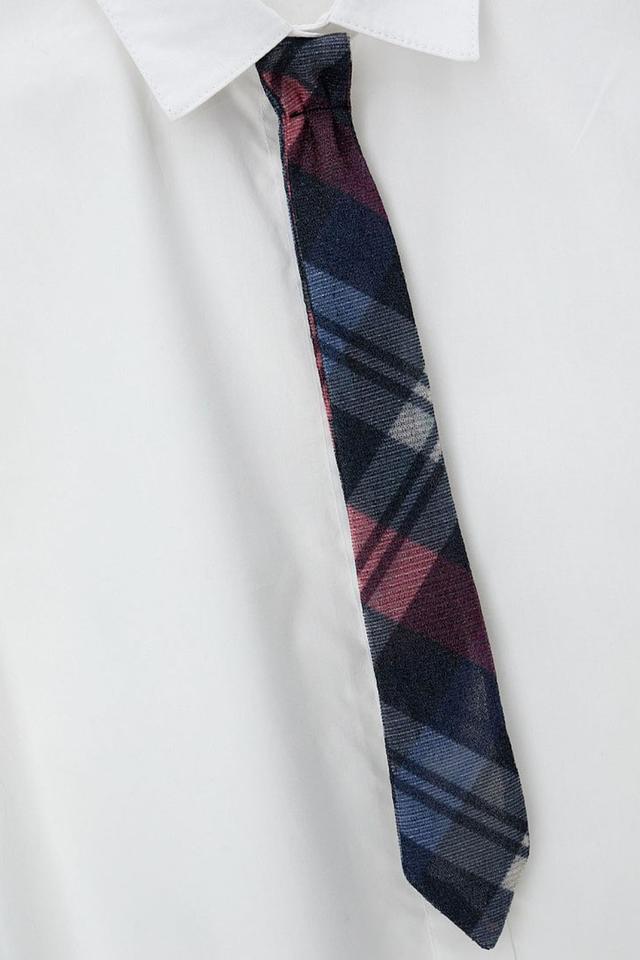 Блуза выполнена из 100% хлопка, что обеспечивает комфорт в носке и позволяет коже дышать. Застежка на пуговицы спереди облегчает надевание и снятие. В комплекте идет галстук в клетку сине-красно-серого цвета, который добавляет образу законченности и официальности.