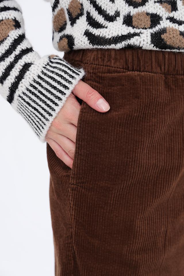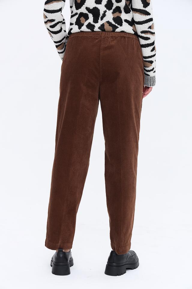Брюки от Oui классического коричневого цвета выполнены из мягкого вельвета с эластаном в составе. Модель прямого кроя с заниженной талией дополнена удобным поясом на кулиске. Состав: хлопок 98%, эластан 2%
