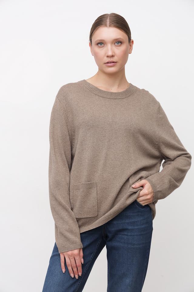 Особенностью данной модели являются два накладных кармана на передней части, которые добавляют практичности и оригинальности. Пуловер идеально сочетается с джинсами, брюками или юбками, создавая стильный и непринужденный образ.