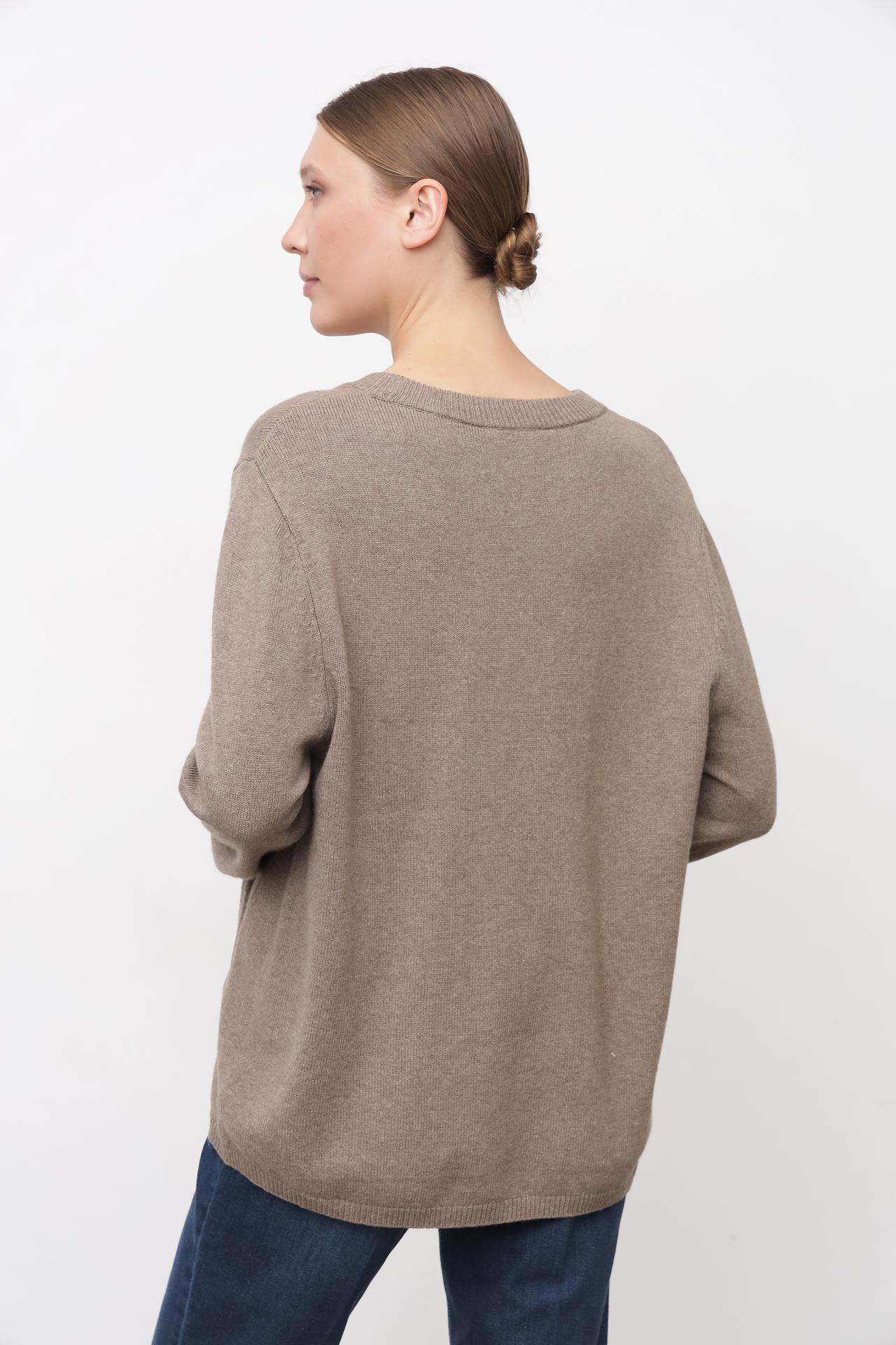 Пуловер имеет прямой силуэт и дополнен удобными накладными карманами. Он идеально подходит для создания многослойных комплектов. Сочетайте его с джинсами, брюками или юбками, чтобы создать свой неповторимый стиль.