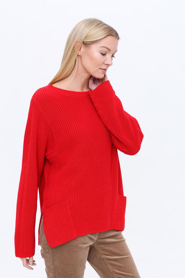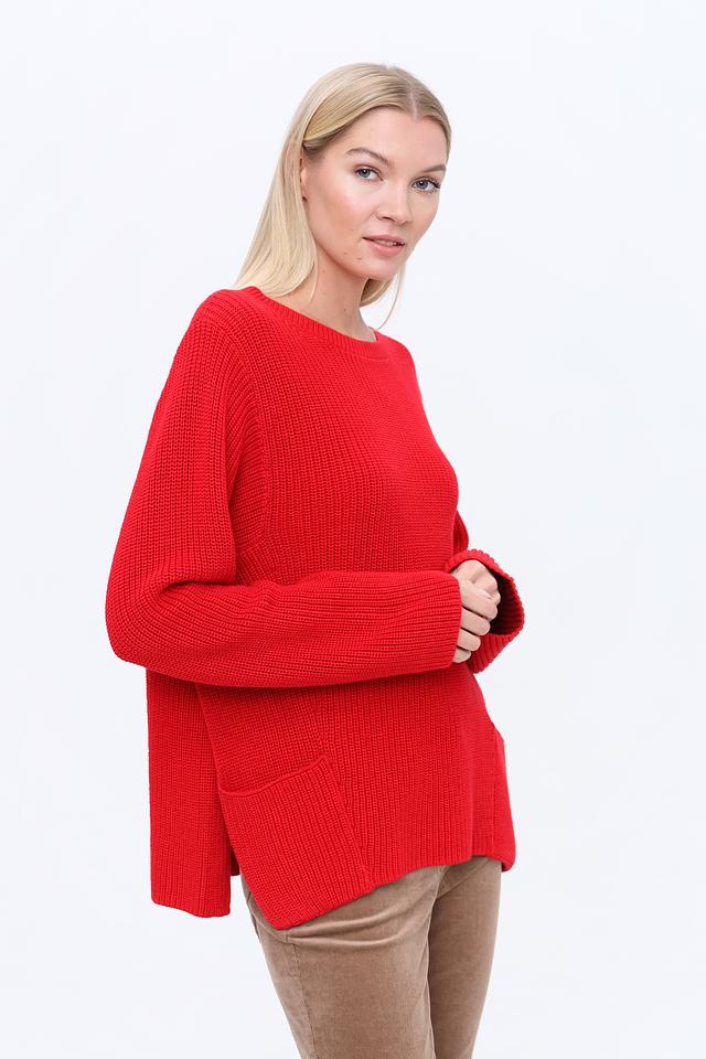 Красный пуловер от Oui из 100% хлопка – это комфорт и стиль в одном изделии. Свободный крой и удобные карманы делают его идеальным выбором для повседневной носки. Состав: хлопок 100%