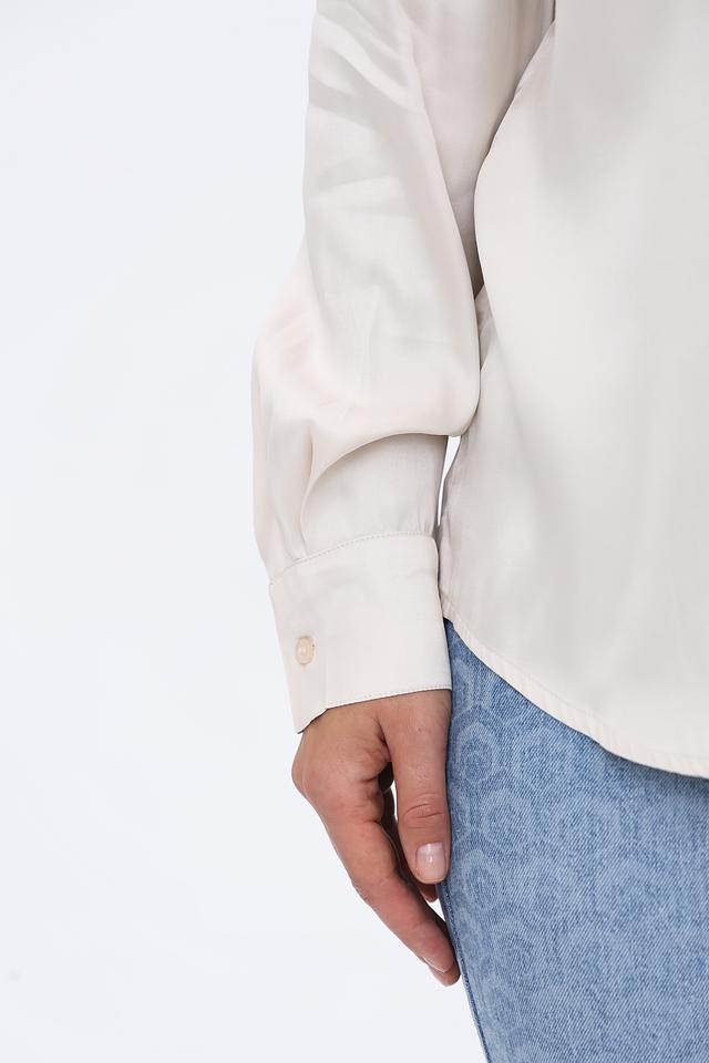 Цвет рубашки – нежный бежевый, который легко сочетается с различными элементами гардероба. Застежка на пуговицах по всей длине позволяет регулировать степень прилегания. Рубашка имеет аккуратную посадку по фигуре, не сковывая движений.