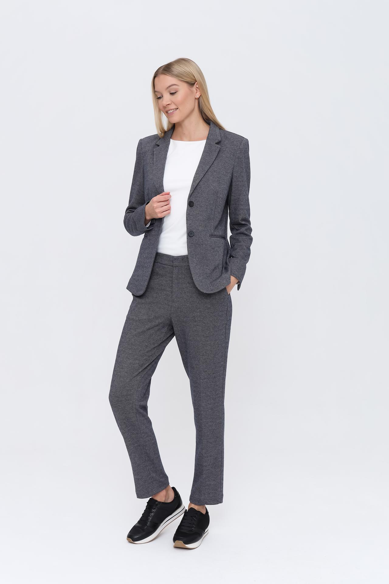 - Дизайн: Элегантный серый цвет и мелкий узор "ёлочка" делают брюки универсальными. Минималистичный дизайн позволяет легко сочетать их с различными версиями верха и обуви.
