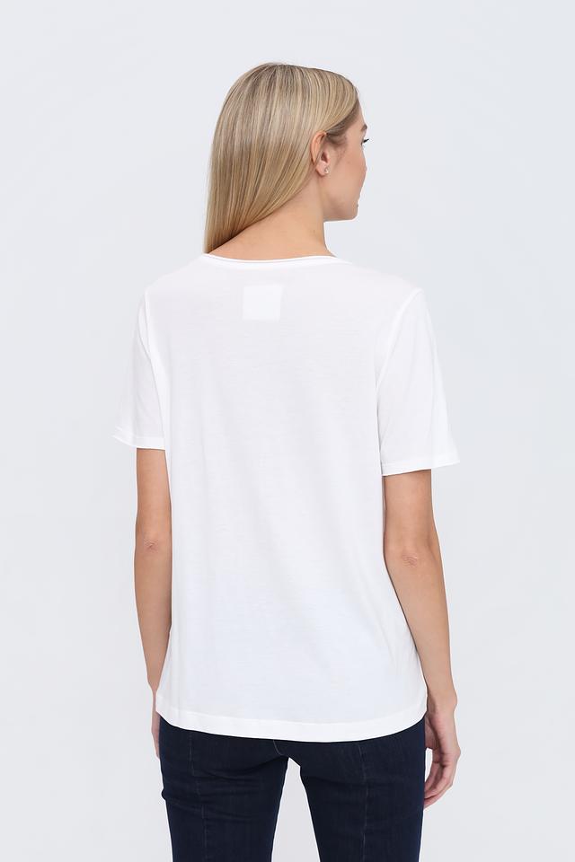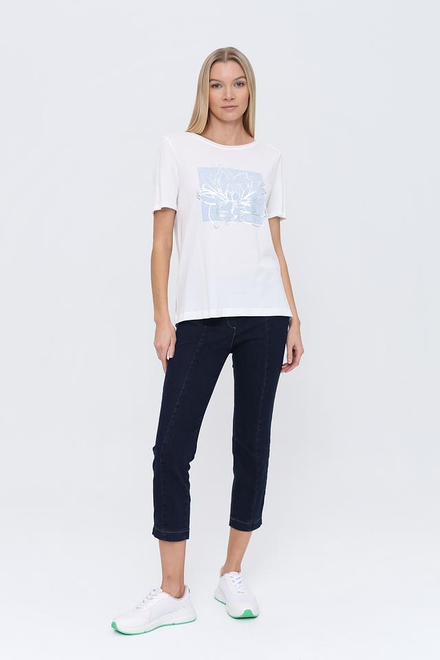 Футболка идеально подходит для создания повседневных образов. Ее можно сочетать с джинсами, брюками или юбками. Округлый вырез горловины и короткие рукава делают эту футболку универсальной и удобной в носке.