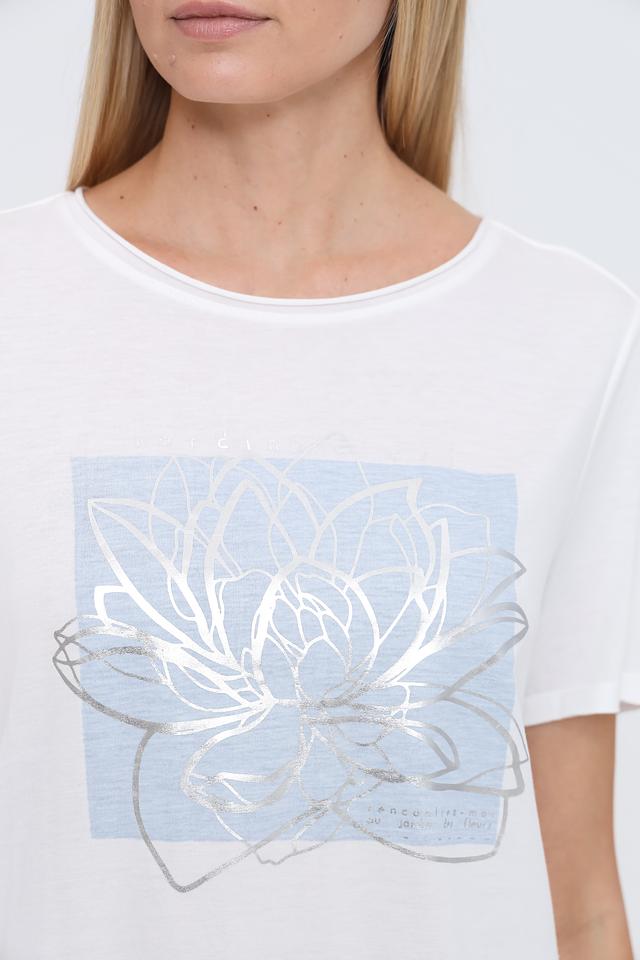 Белая футболка Oui с оригинальным цветочным принтом голубого оттенка станет отличным дополнением к вашему гардеробу. Изготовлена из мягкого и приятного к телу сочетания хлопка и модала, обеспечивая комфорт в течение всего дня. Состав: хлопок 50%, модал 50%
