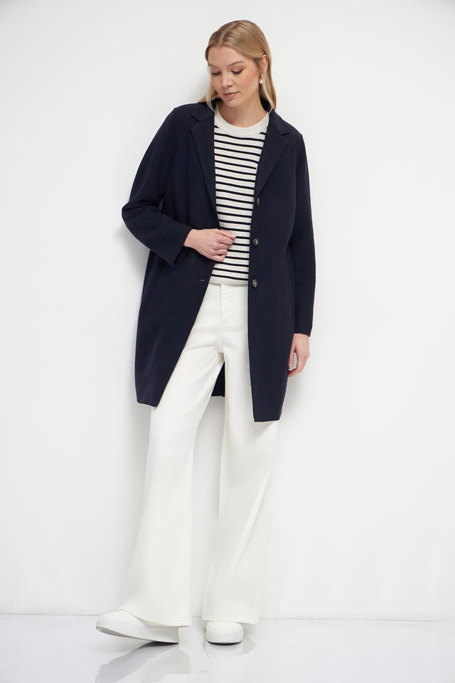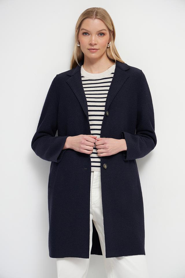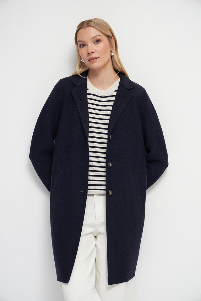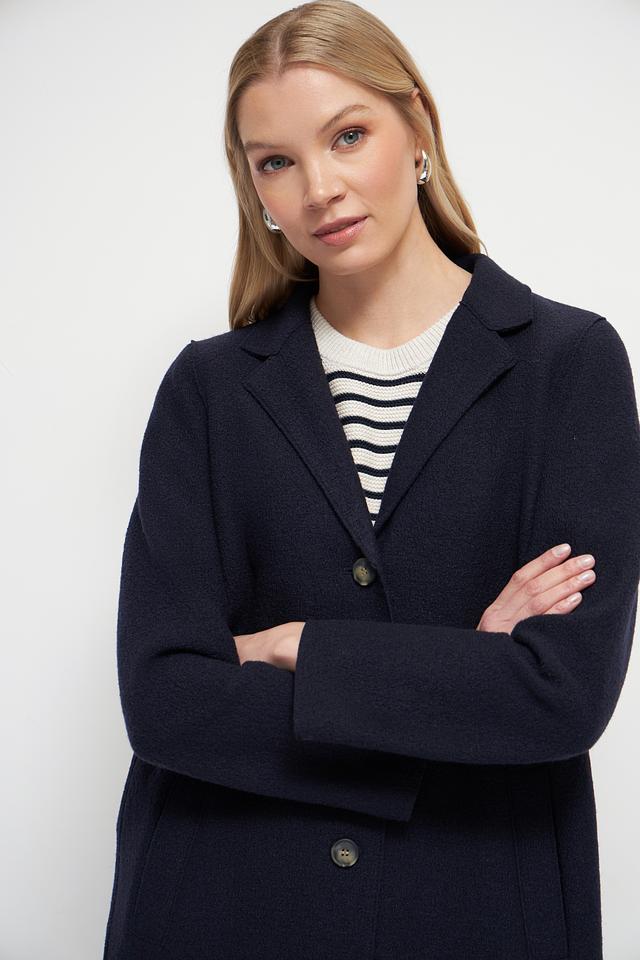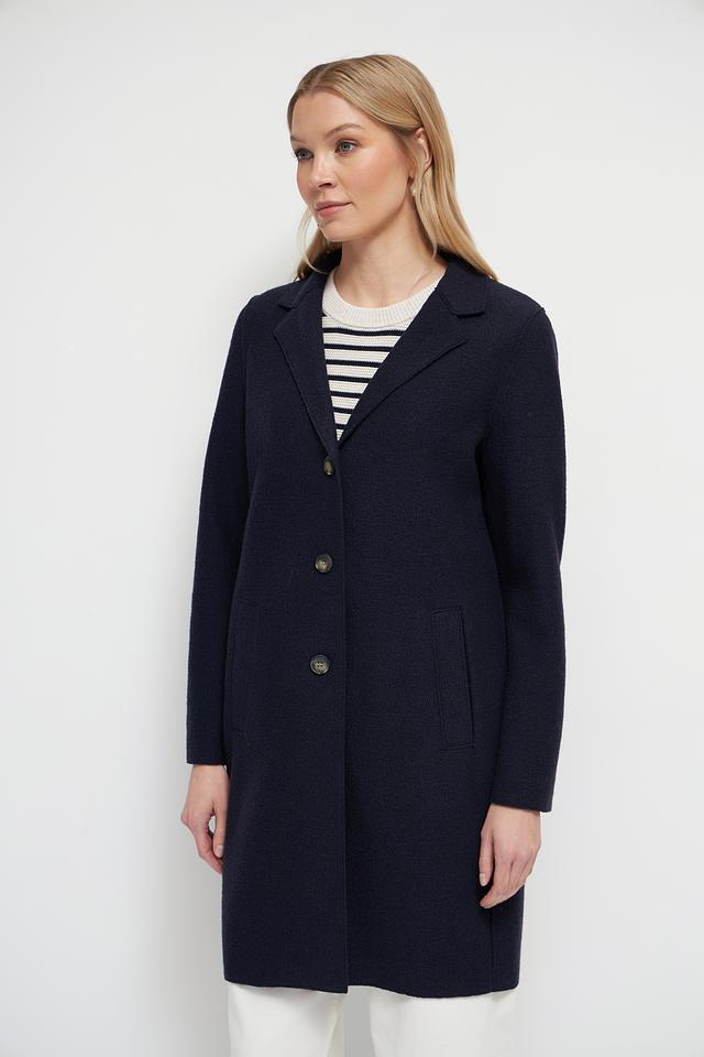 Это элегантное пальто от бренда Oui станет прекрасным дополнением к вашему гардеробу. Выполнено в классическом тёмно-синем цвете из высококачественной 100% шерсти, обеспечивающей тепло и комфорт в холодную погоду.