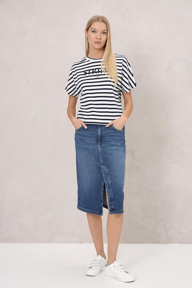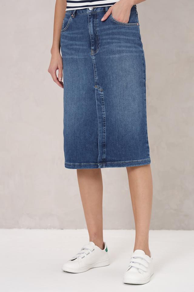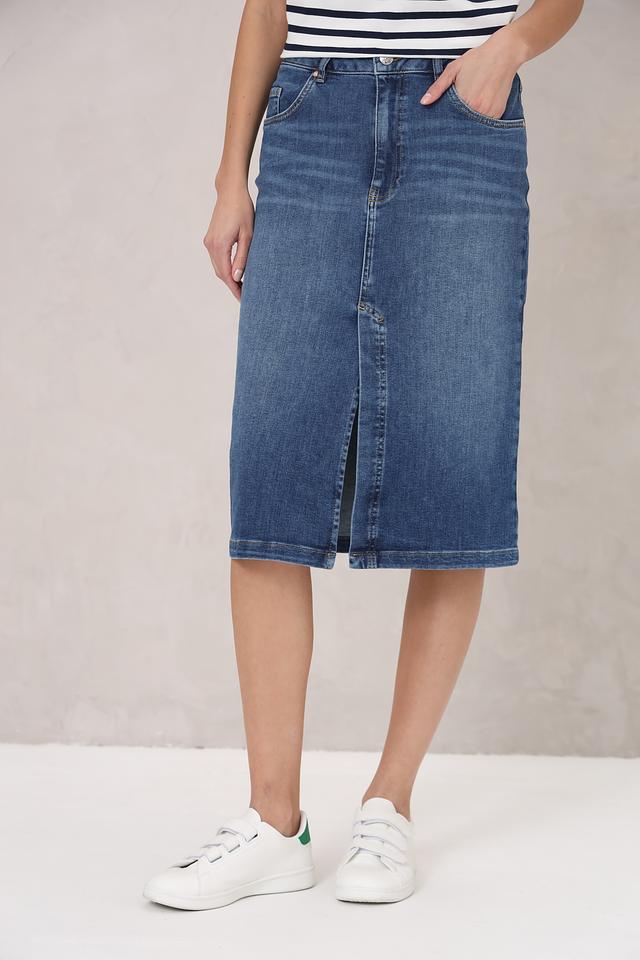 Джинсовая юбка Oui миди синего цвета – стильная и удобная модель на каждый день. Классический крой и качественный деним обеспечивают комфортную посадку и долговечность. Идеально сочетается с повседневной обувью и топами. Состав: хлопок 92%, эластомультиэстер 6%, эластан 2%