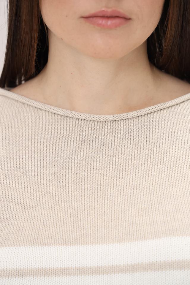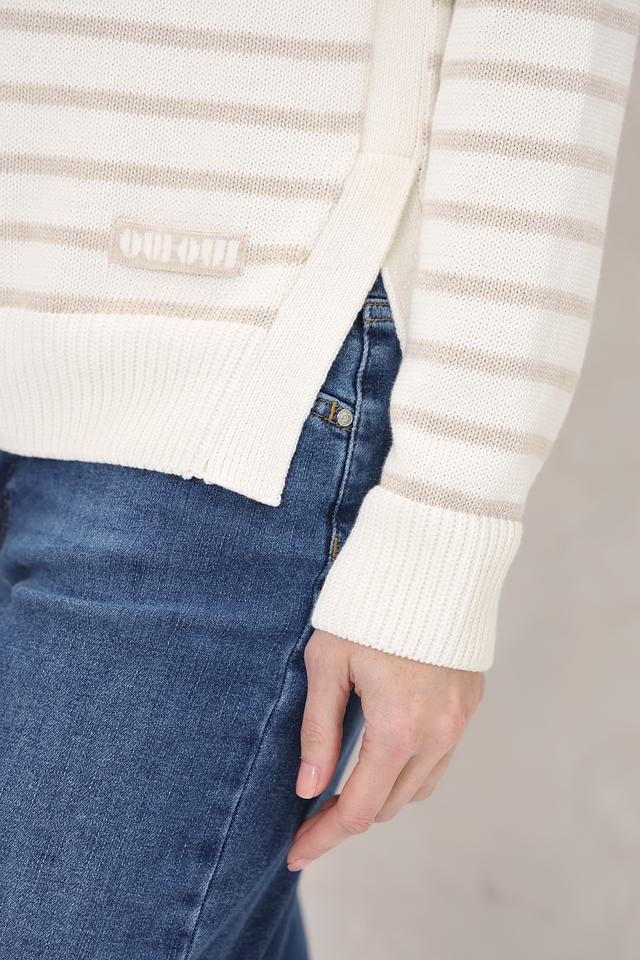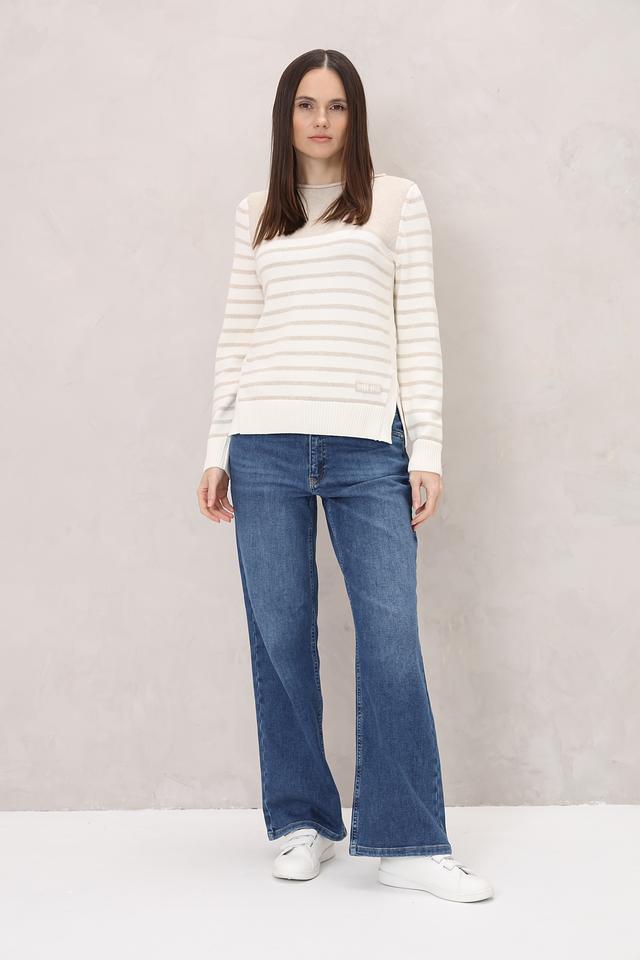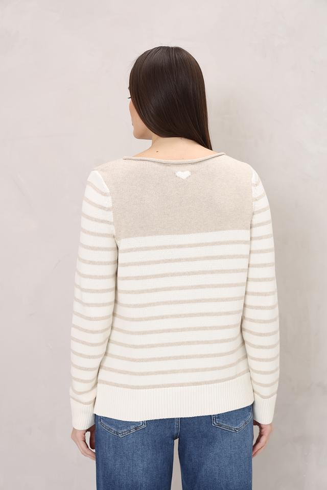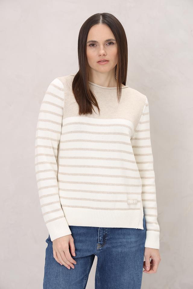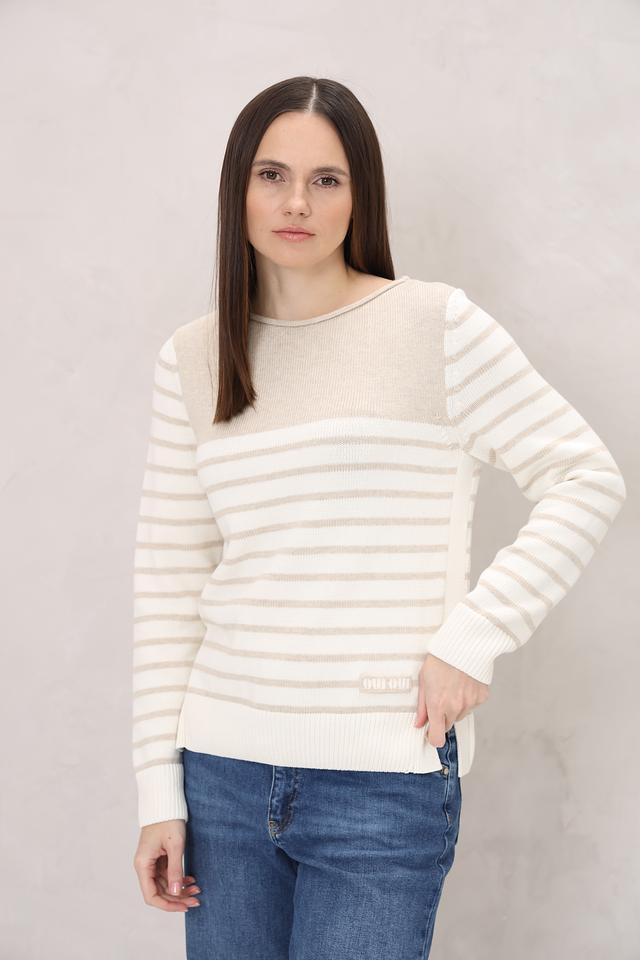 Этот пуловер от Oui выполнен в классическом стиле с полосатым узором, сочетающим в себе оттенки бежевого и молочного. Он станет отличным дополнением к вашему образу, придавая ему легкость и непринужденность.
