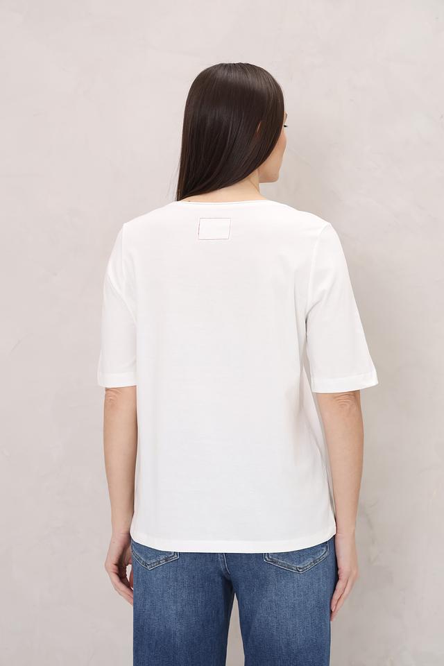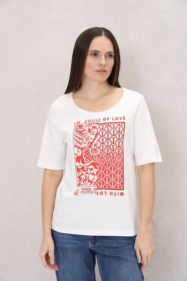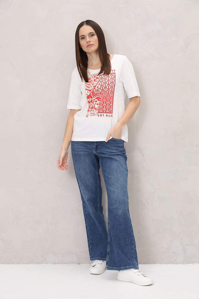 Белая футболка от Oui с ярким красным принтом в виде узора. Изготовлена из 100% хлопка, обеспечивающего комфорт и воздухопроницаемость. Стильный и оригинальный выбор для повседневного гардероба. Состав: хлопок 100%