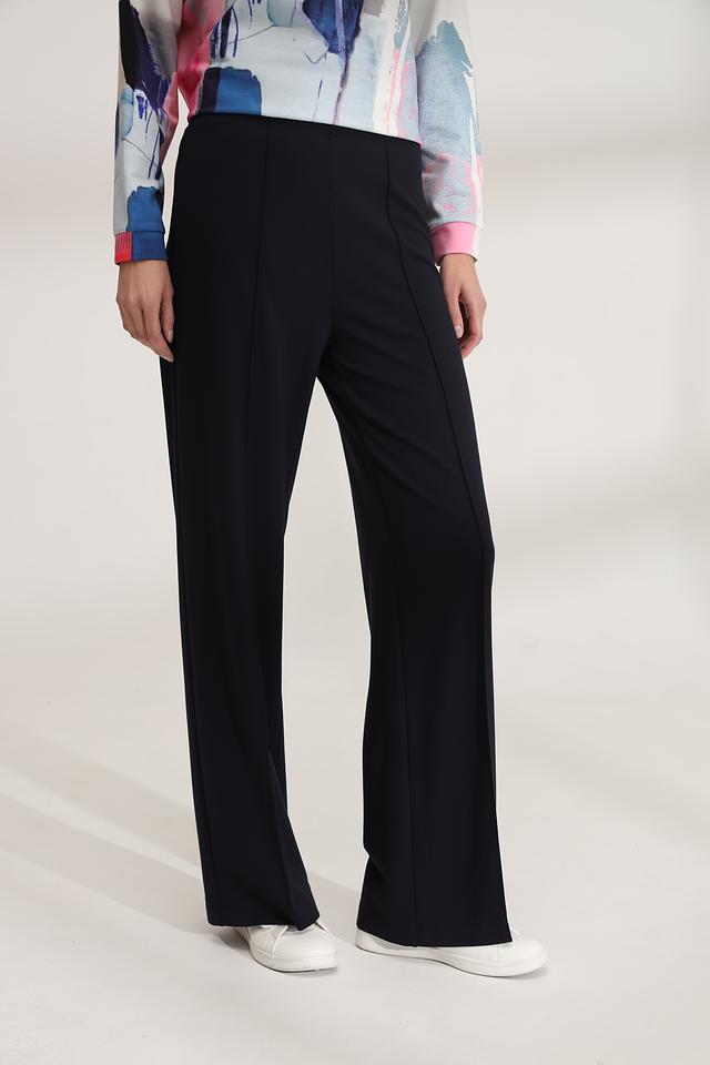 Высокая посадка и широкий клёш визуально удлиняют ноги и создают элегантный силуэт. Прямой крой обеспечивает свободу движений, а эластичный пояс гарантирует удобную посадку. Эти брюки идеально подойдут для создания как повседневных, так и вечерних образов.