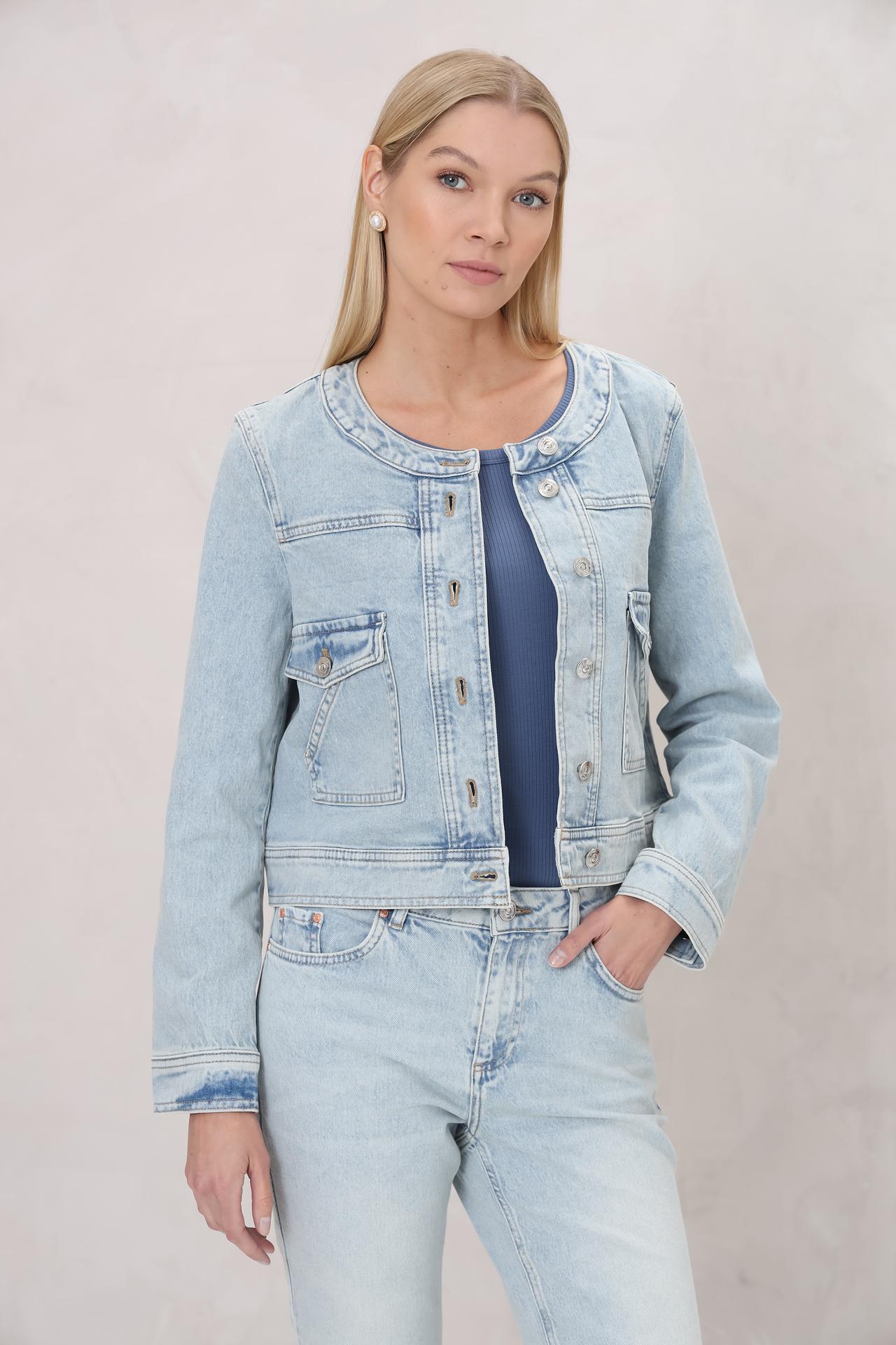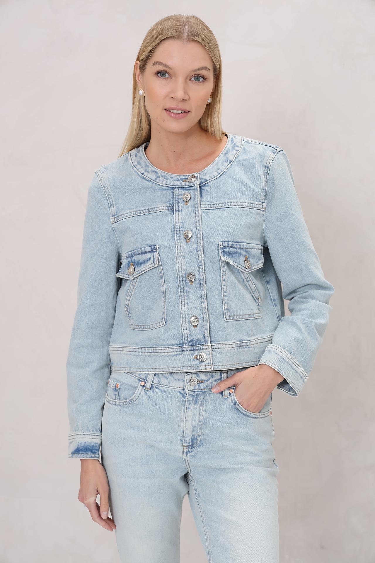 Жакет Oui голубой деним на кнопках с накладными карманами