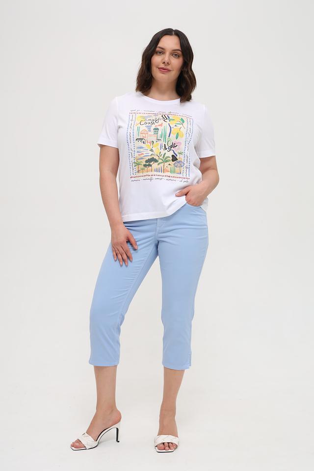 Капри имеют классический прямой крой, который подчеркивает фигуру и обеспечивает комфорт при носке. Изготовлены из высококачественного хлопка с добавлением эластана (3%), что делает их приятными на ощупь и эластичными.