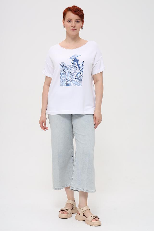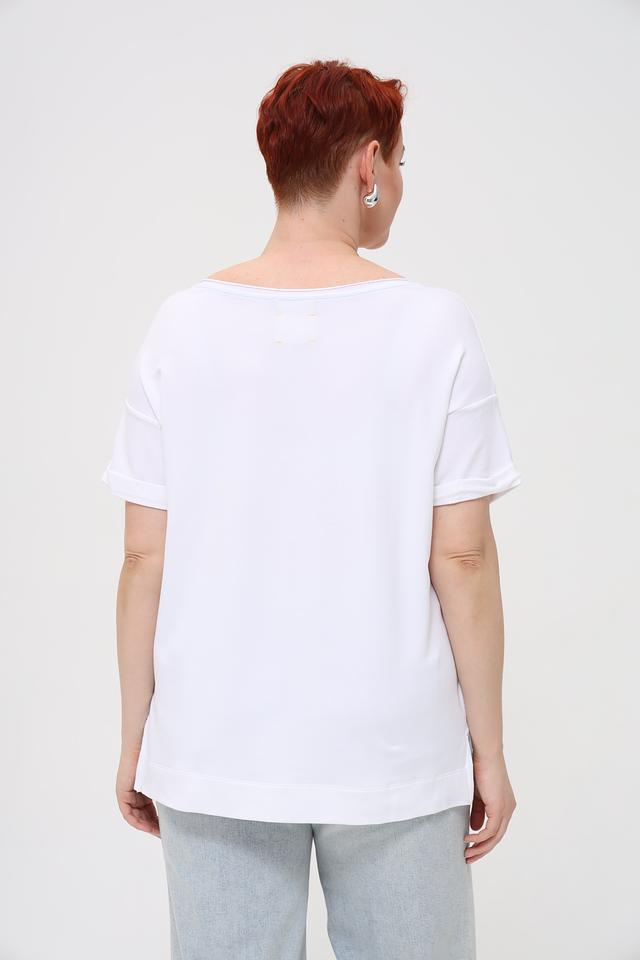 Белая футболка Oui с оригинальным принтом в стиле арт-деко. Модель свободного кроя из мягкого модала с добавлением хлопка и эластана, обеспечивающего комфорт при носке. Состав: модал 70%, хлопок 25%, эластан 5%