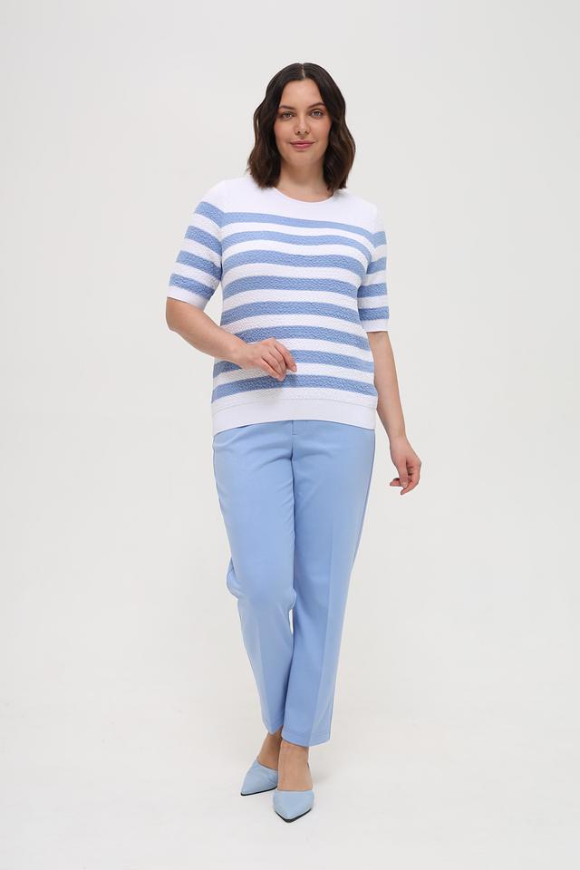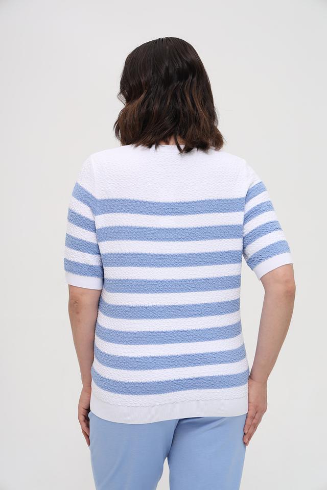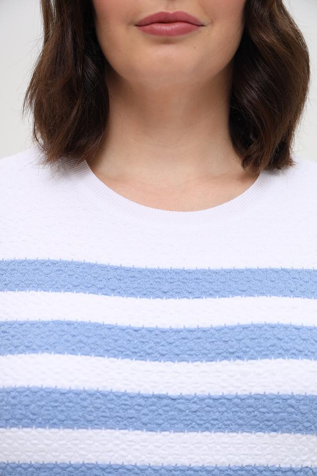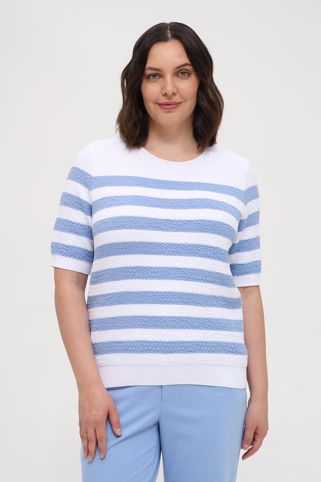 Женский пуловер Oui голубого и белого цвета с коротким рукавом выполнен в классическую полоску. Модель из 100% хлопка обеспечит комфорт и удобство в повседневной носке. Состав: хлопок 100%