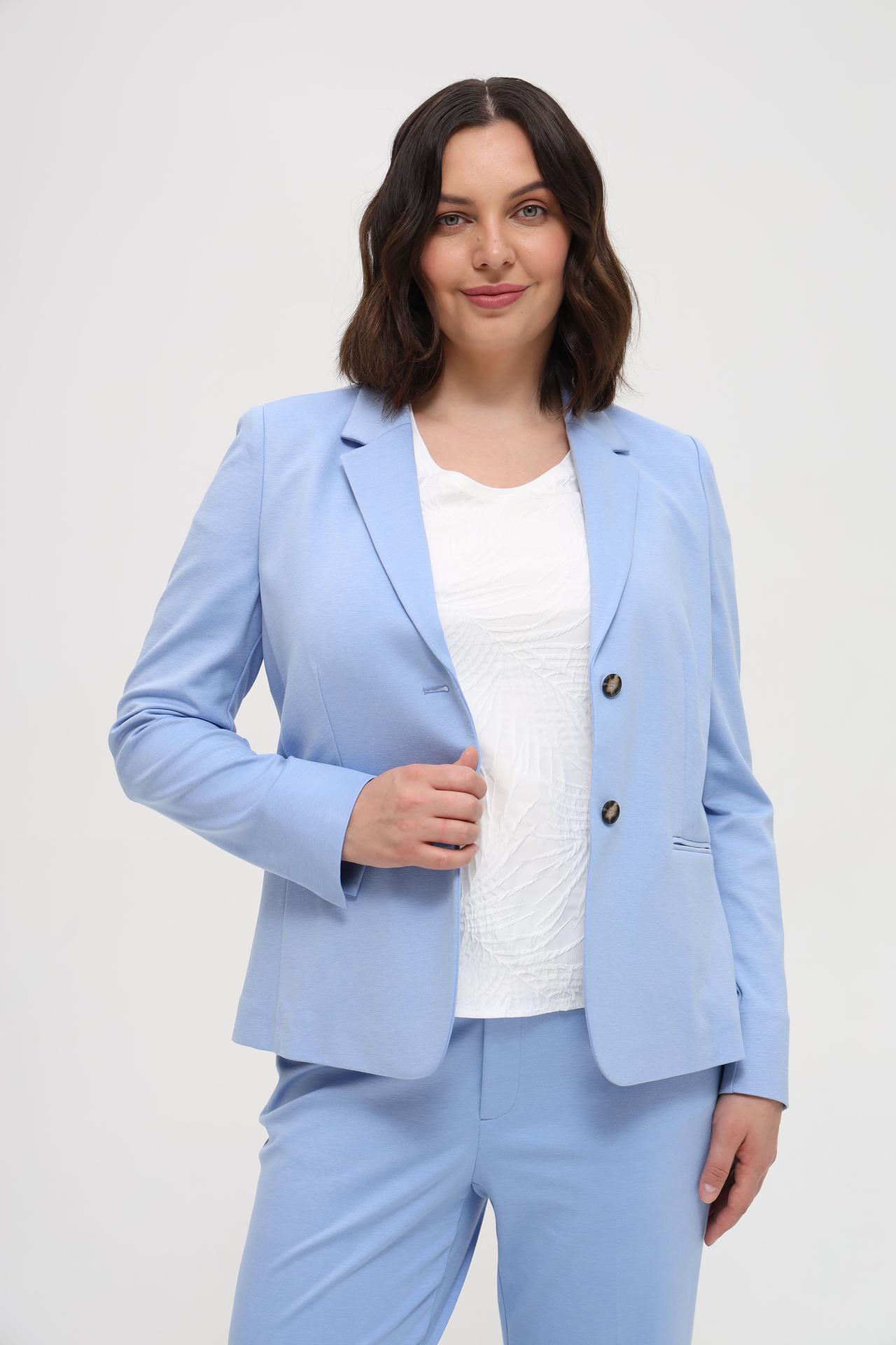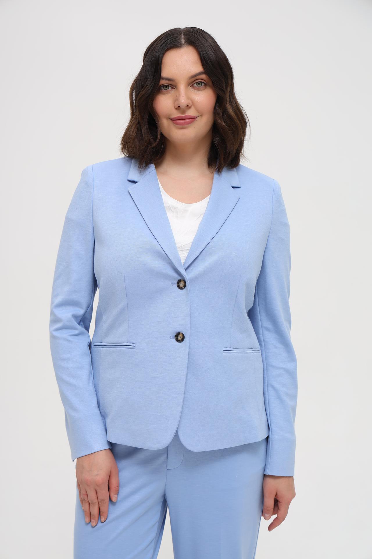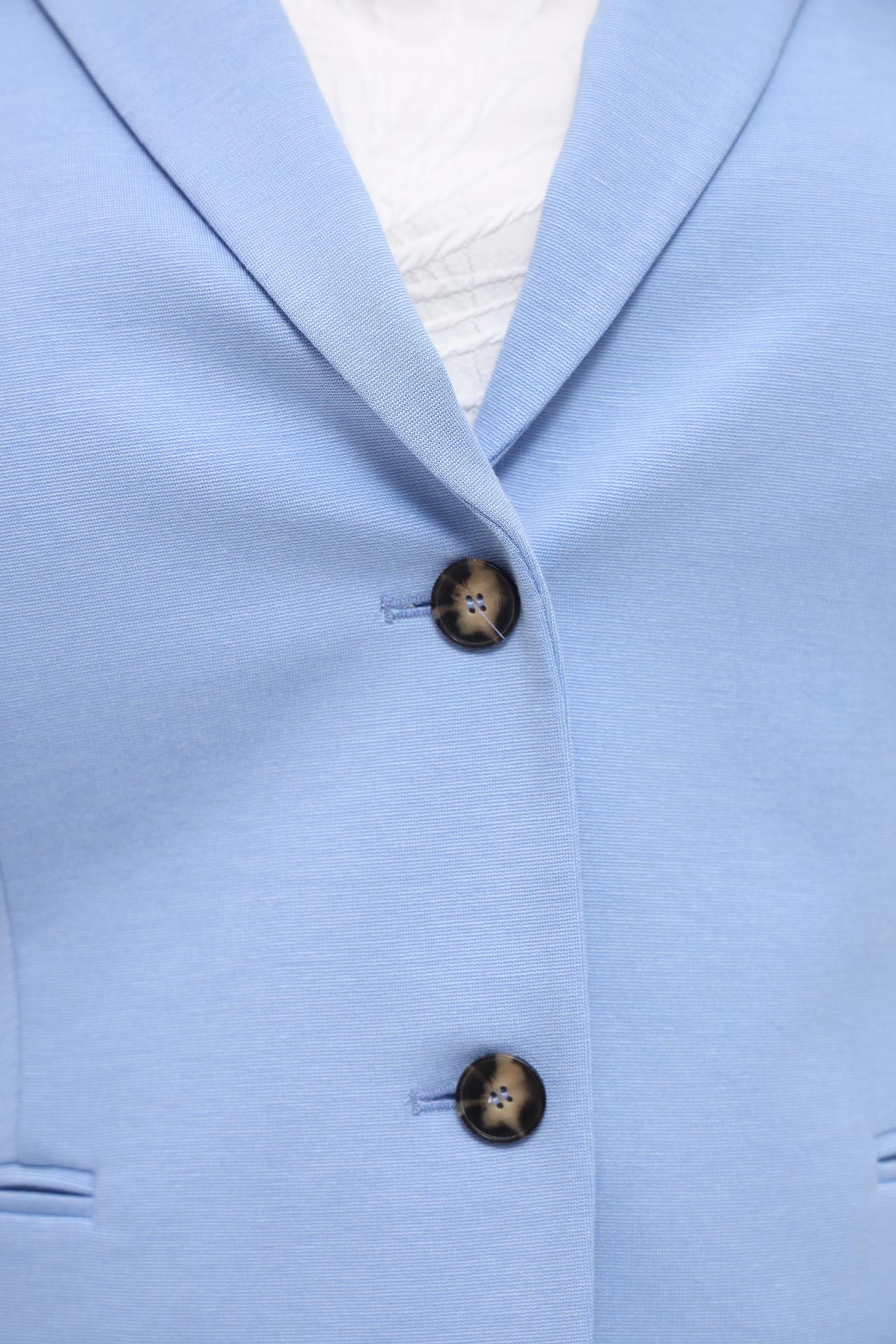 - Цвет. Голубой цвет придает жакету свежий и привлекательный вид.