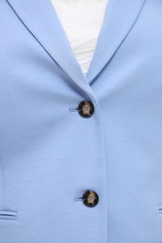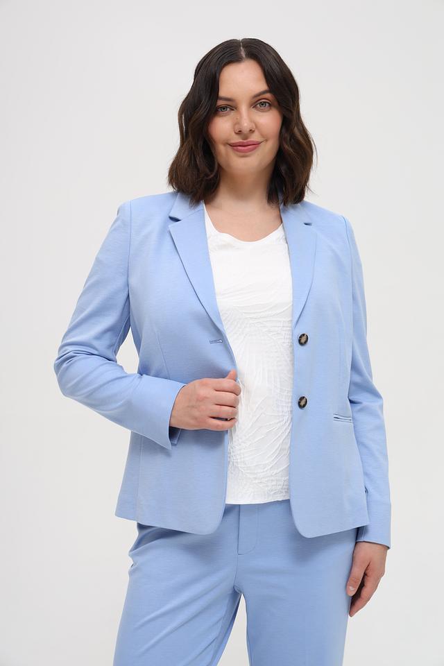 Этот жакет от бренда Oui выполнен в нежном голубом цвете и станет прекрасным дополнением к вашему гардеробу. Жакет имеет приталенный силуэт, который выгодно подчеркивает достоинства фигуры.