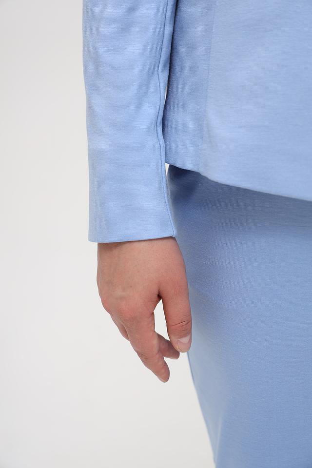 Жакет изготовлен из качественной ткани, в составе которой 65% вискоза, 30% полиамид и 5% эластан. Это сочетание материалов обеспечивает приятные тактильные ощущения, хорошую посадку и легкий уход за изделием.