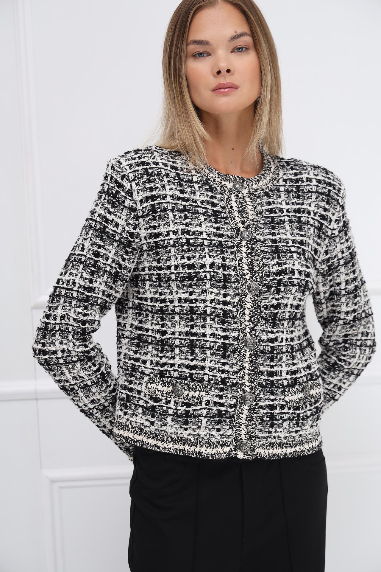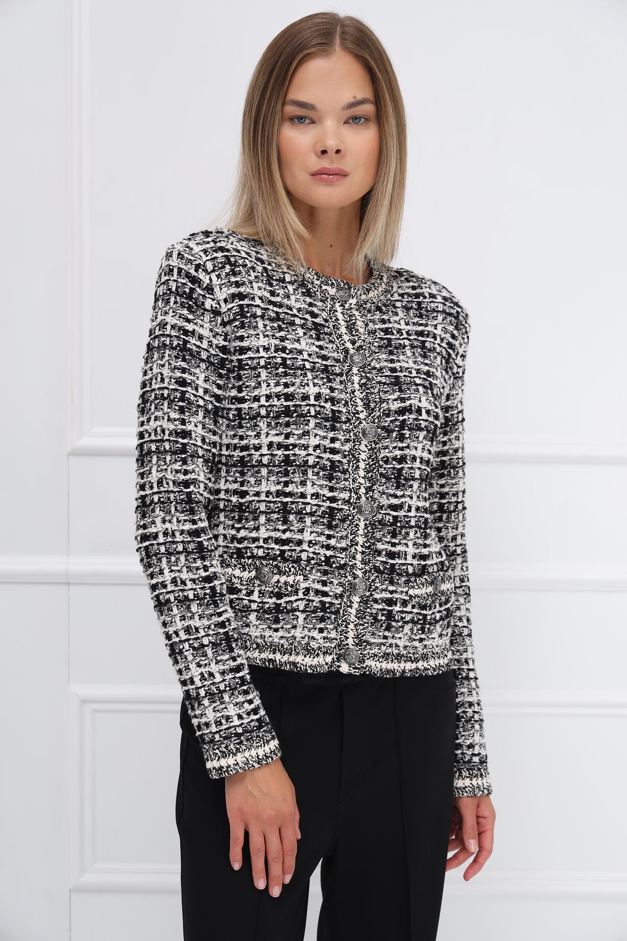 Жакет Oui чёрно-белый твидовый с серебристыми пуговицами