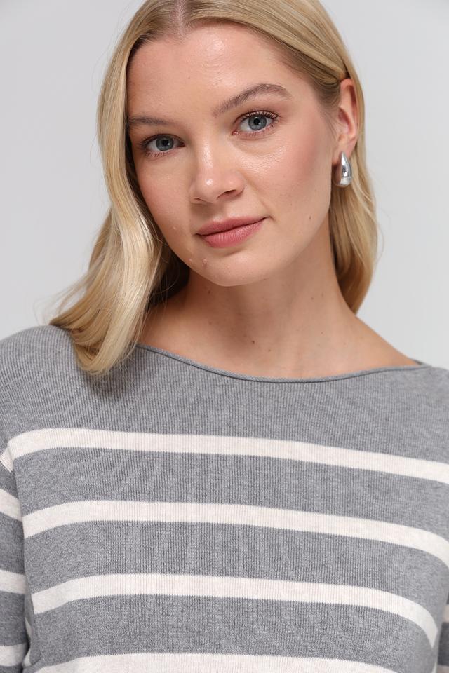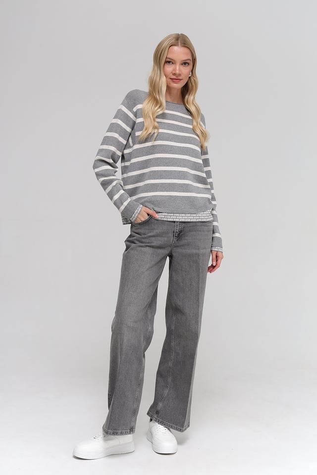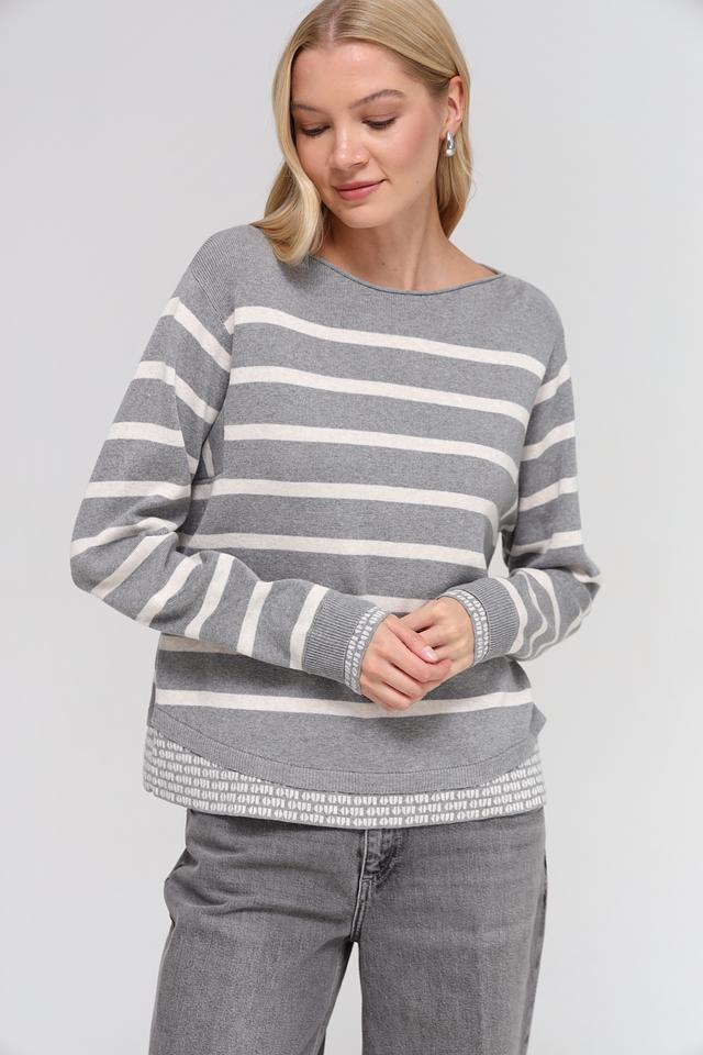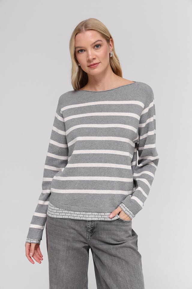 Этот пуловер от Oui – идеальный выбор для создания повседневного и элегантного образа. Выполненный в сером цвете с белыми полосами, он легко сочетается с различными элементами гардероба.