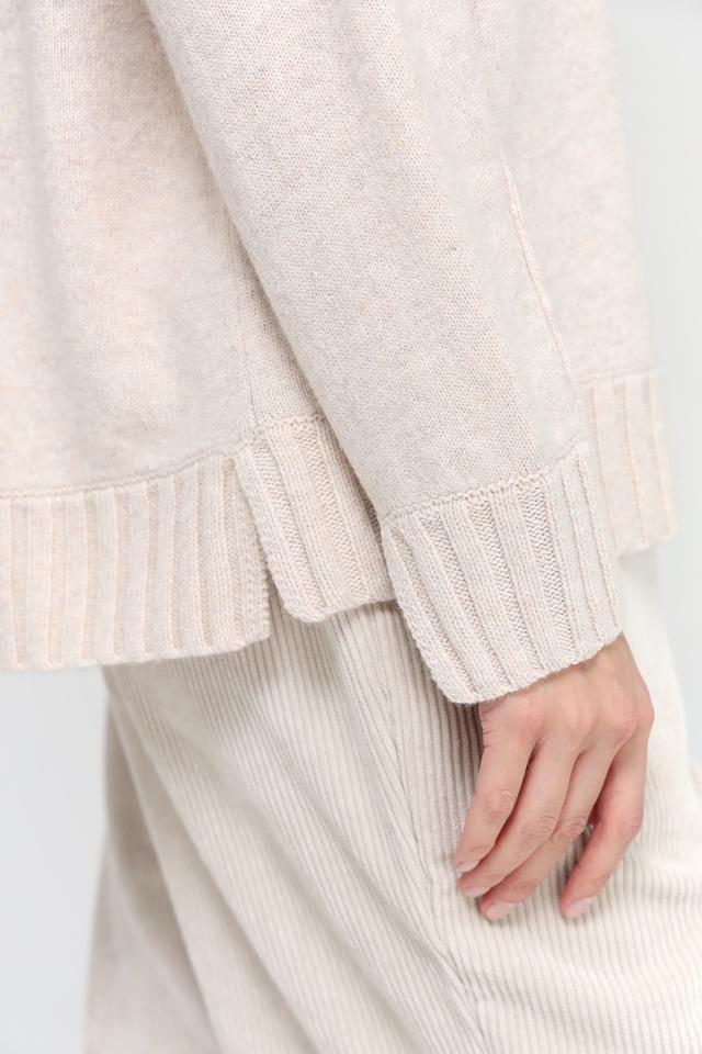 Бежевый пуловер от Oui – это стильная и комфортная модель свободного кроя. Изготовлен из мягкой смеси шерсти, полиамида и модала, что обеспечивает приятные тактильные ощущения и удобство в носке. Состав: шерсть 50%, полиамид 30%, модал 20%