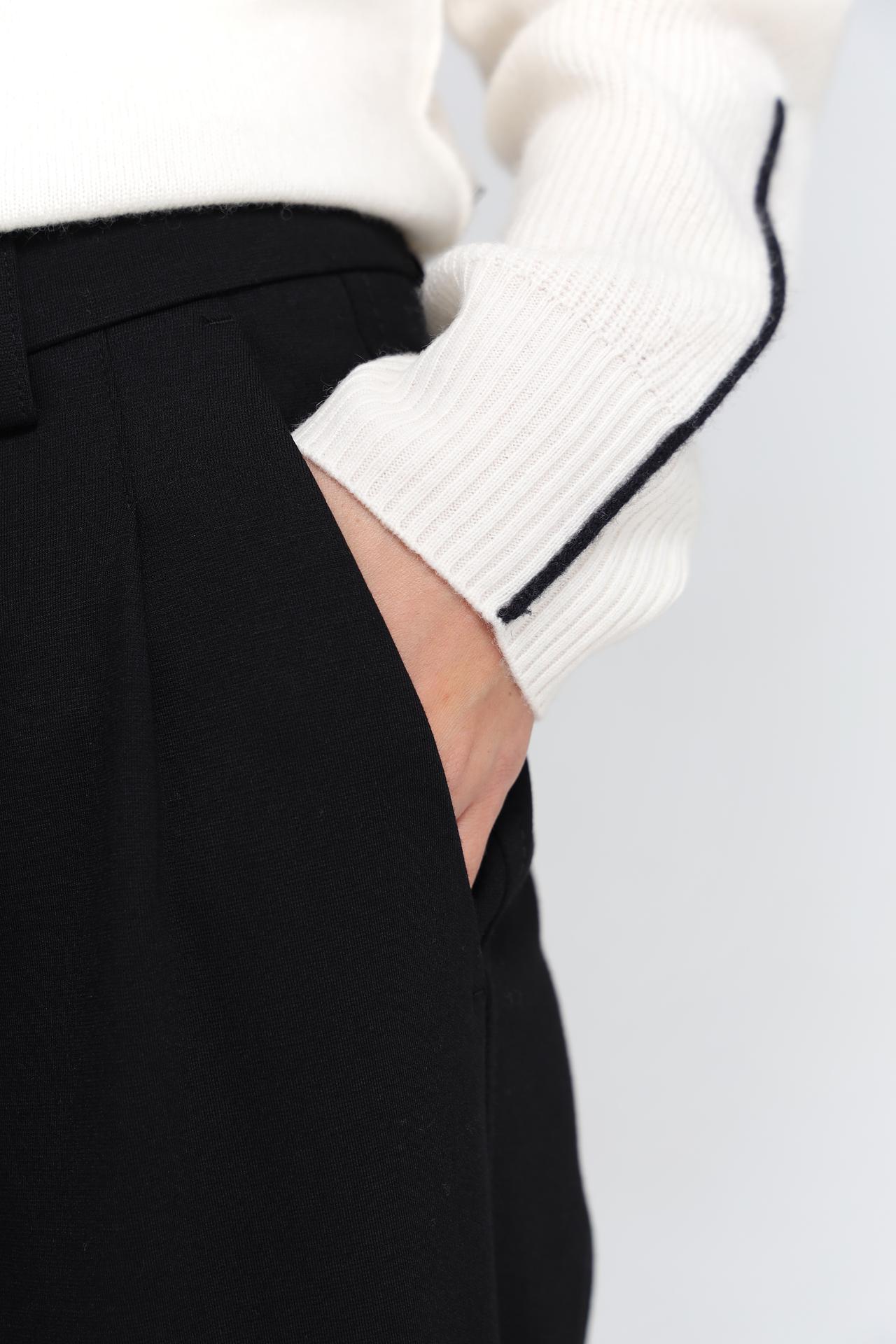 - Состав ткани: Брюки выполнены из качественной смесовой ткани, включающей 65% вискозы, 30% полиамида и 5% эластана. Это обеспечивает приятные тактильные ощущения, износостойкость и отличную посадку по фигуре.
