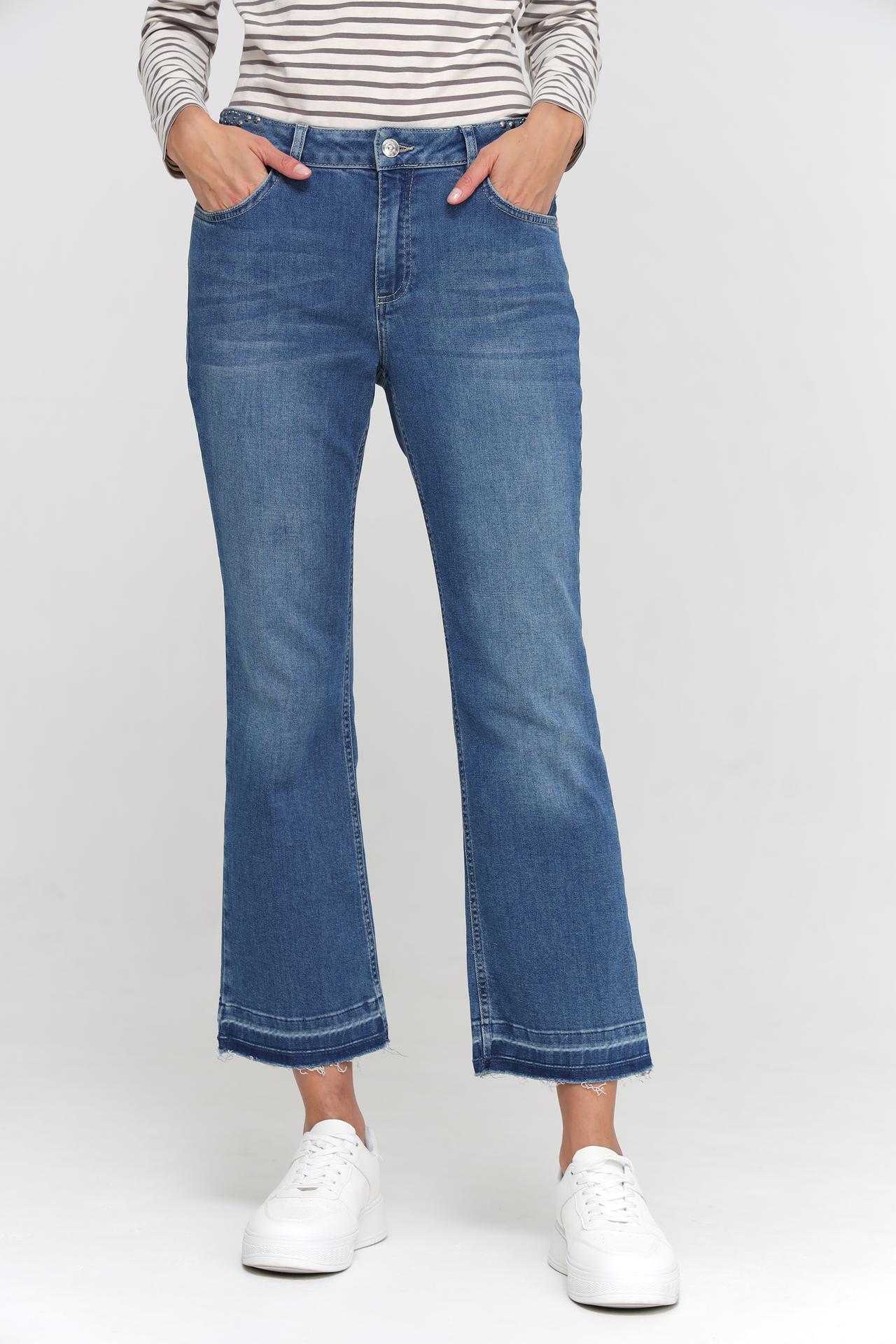 - Крой: Укороченные джинсы клеш от колена для создания модного силуэта.