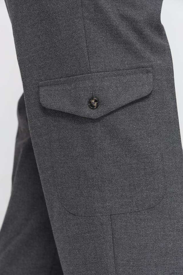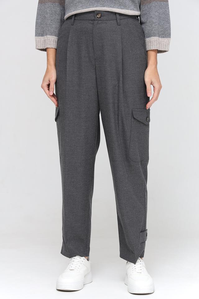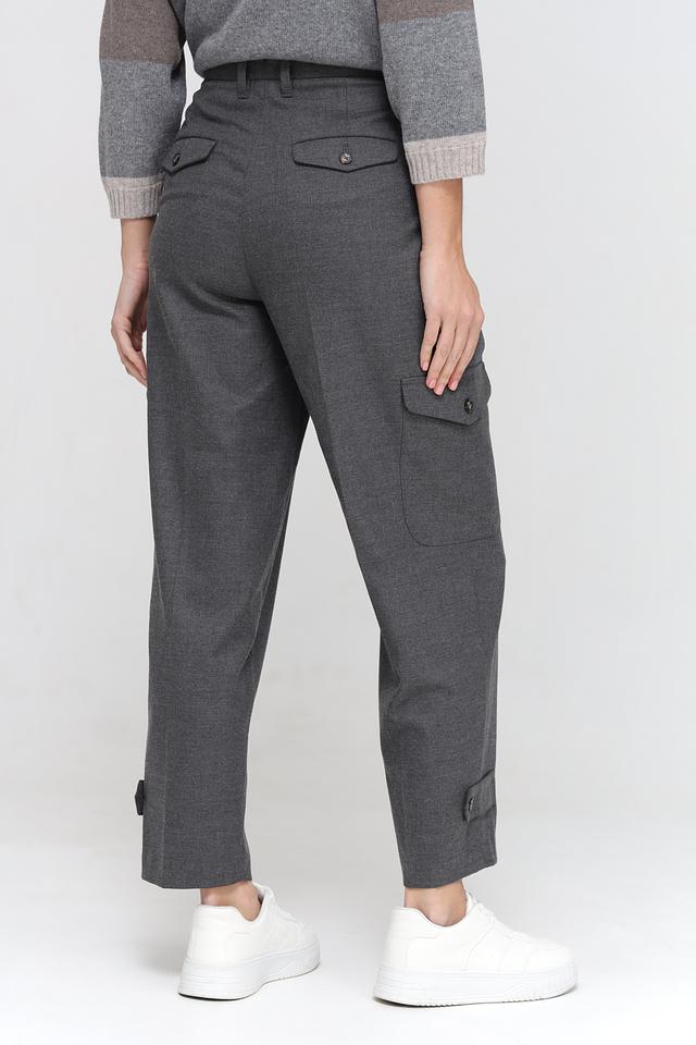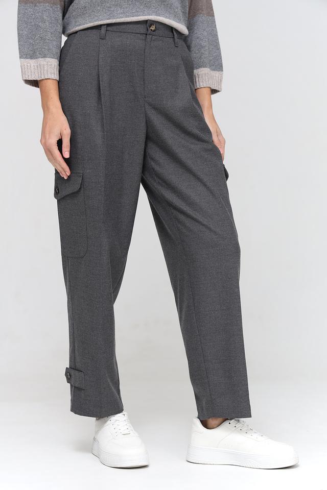 Дизайн брюк дополнен функциональными карманами и аккуратными складками, которые придают им элегантный вид. Клёш от колена делает силуэт более женственным и сбалансированным. Данная модель станет отличным дополнением к вашему повседневному или деловому гардеробу.