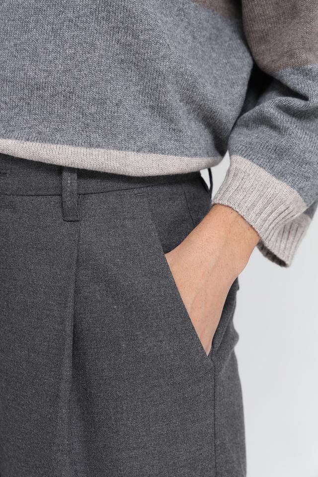 Представляем стильные брюки клёш от бренда Oui. Эта модель выполнена в спокойном сером цвете, который легко сочетается с различными элементами гардероба.